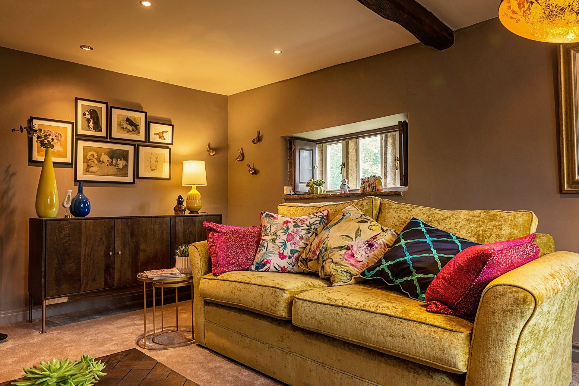 Гостиная в горчичных тонах