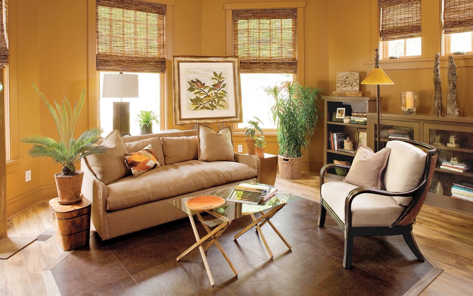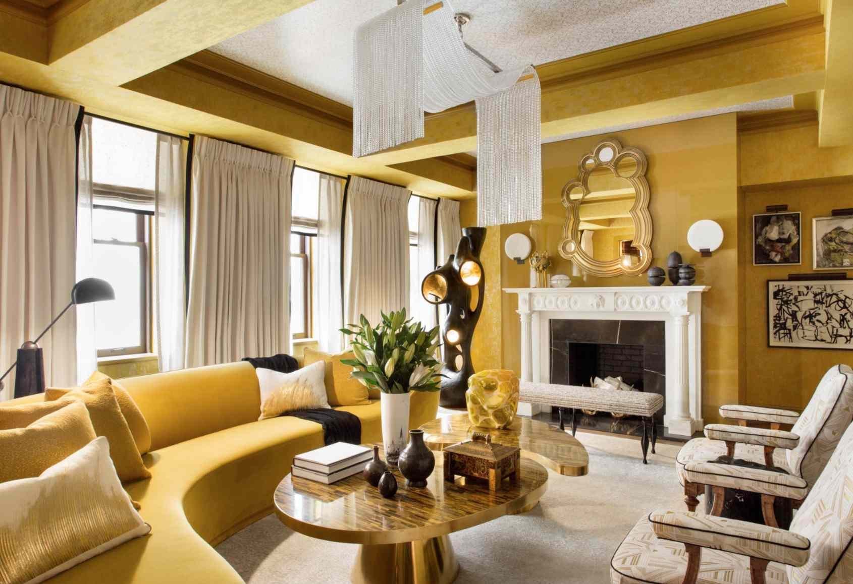 Охра в интерьере гостиной