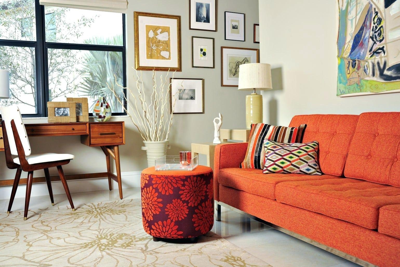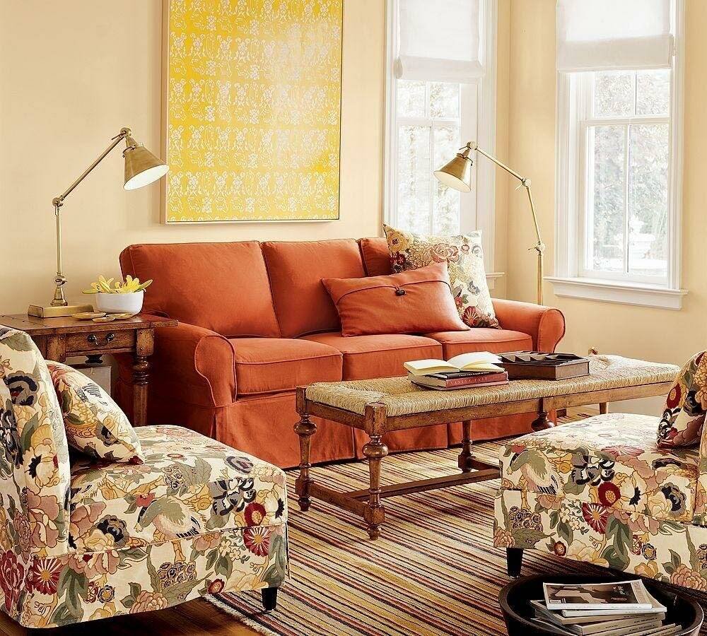 Оранжевый диван в интерьере