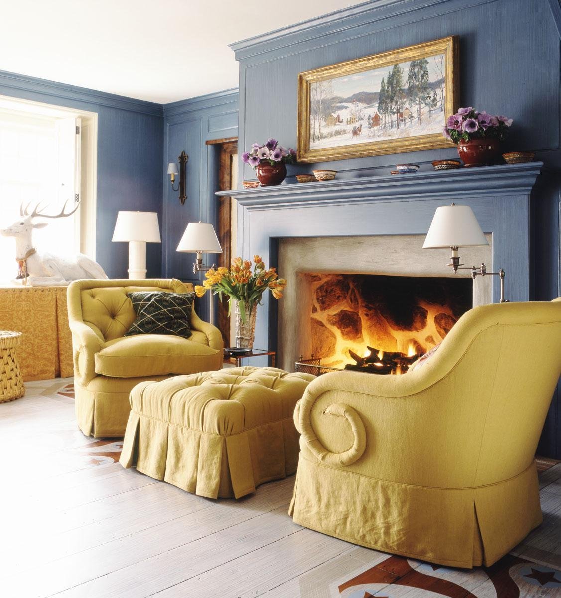 Гостиная с камином яркие цвета