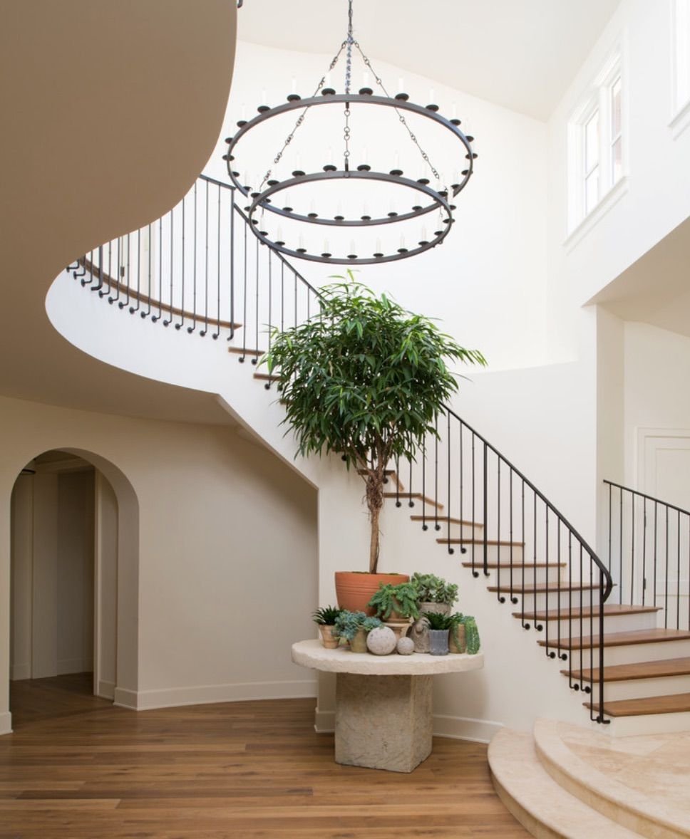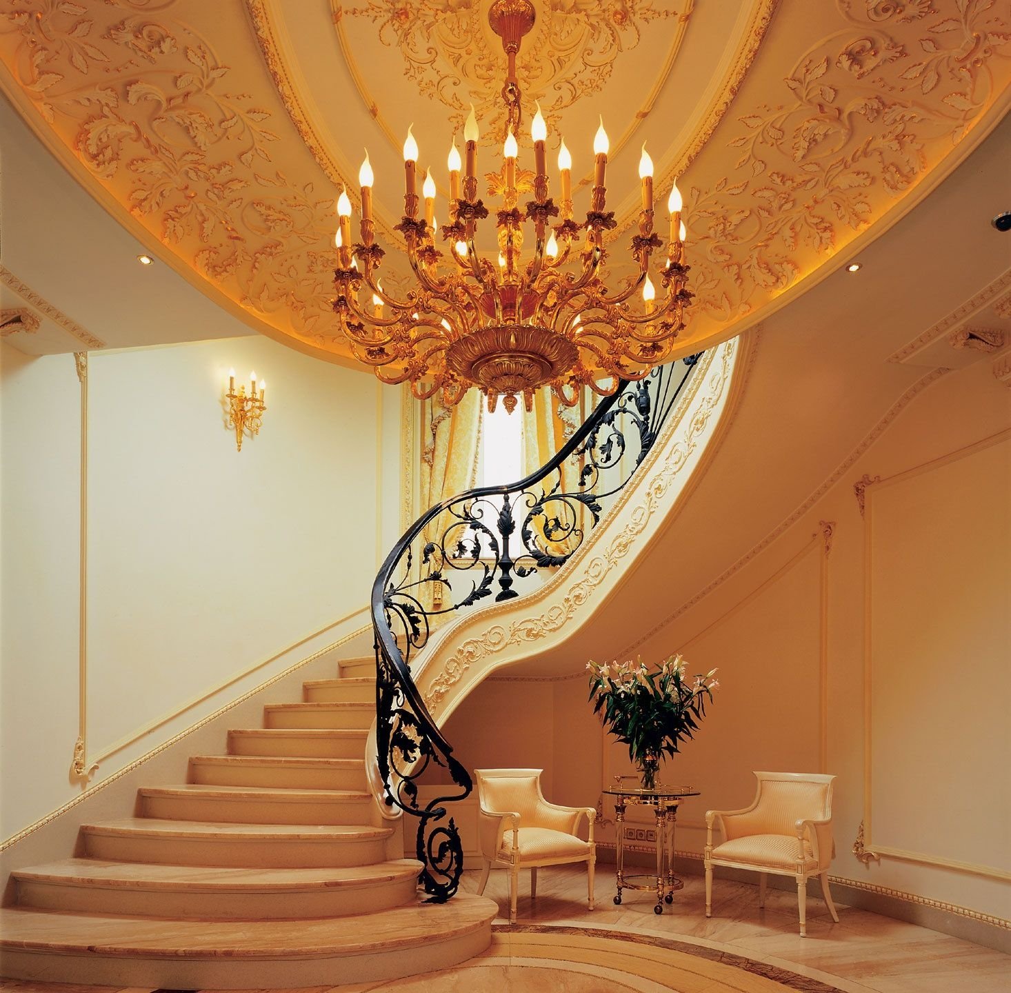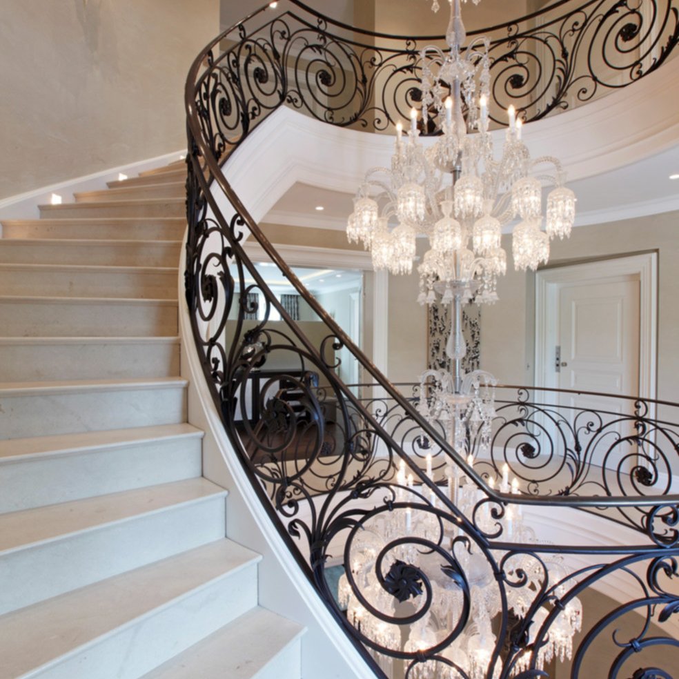 Кованная люстра над лестницей