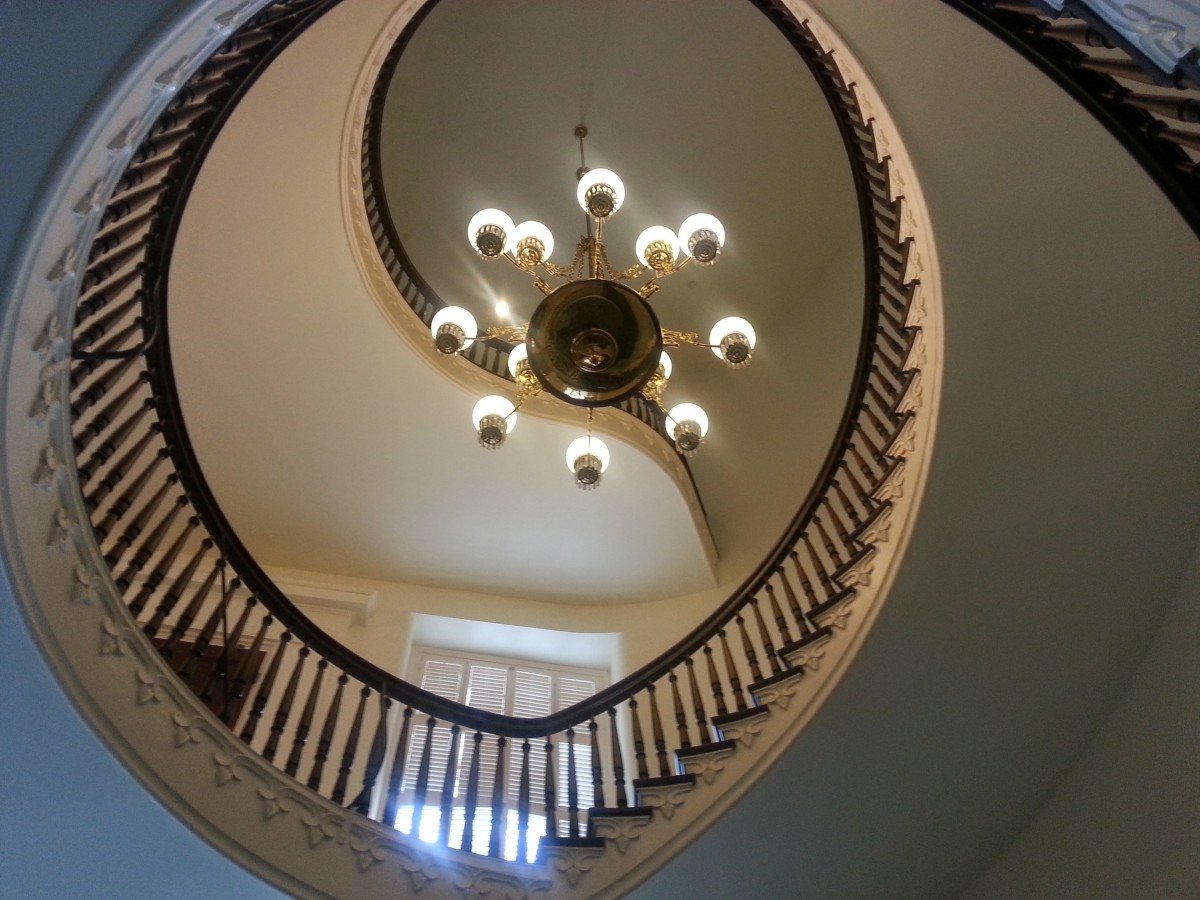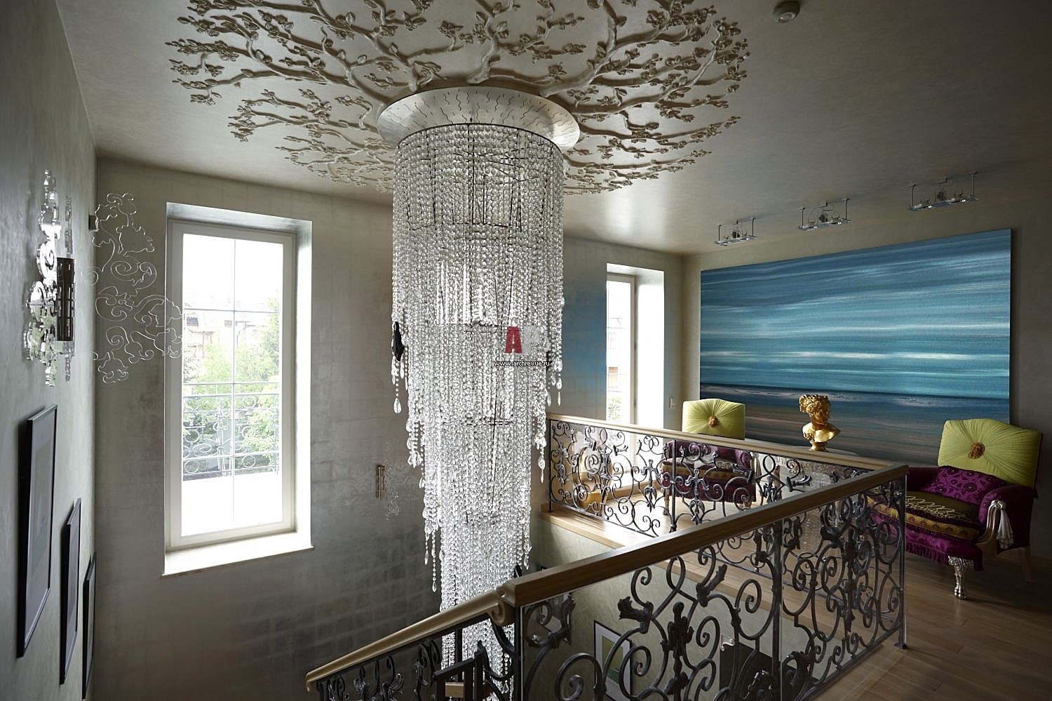 Люстра над лестницей