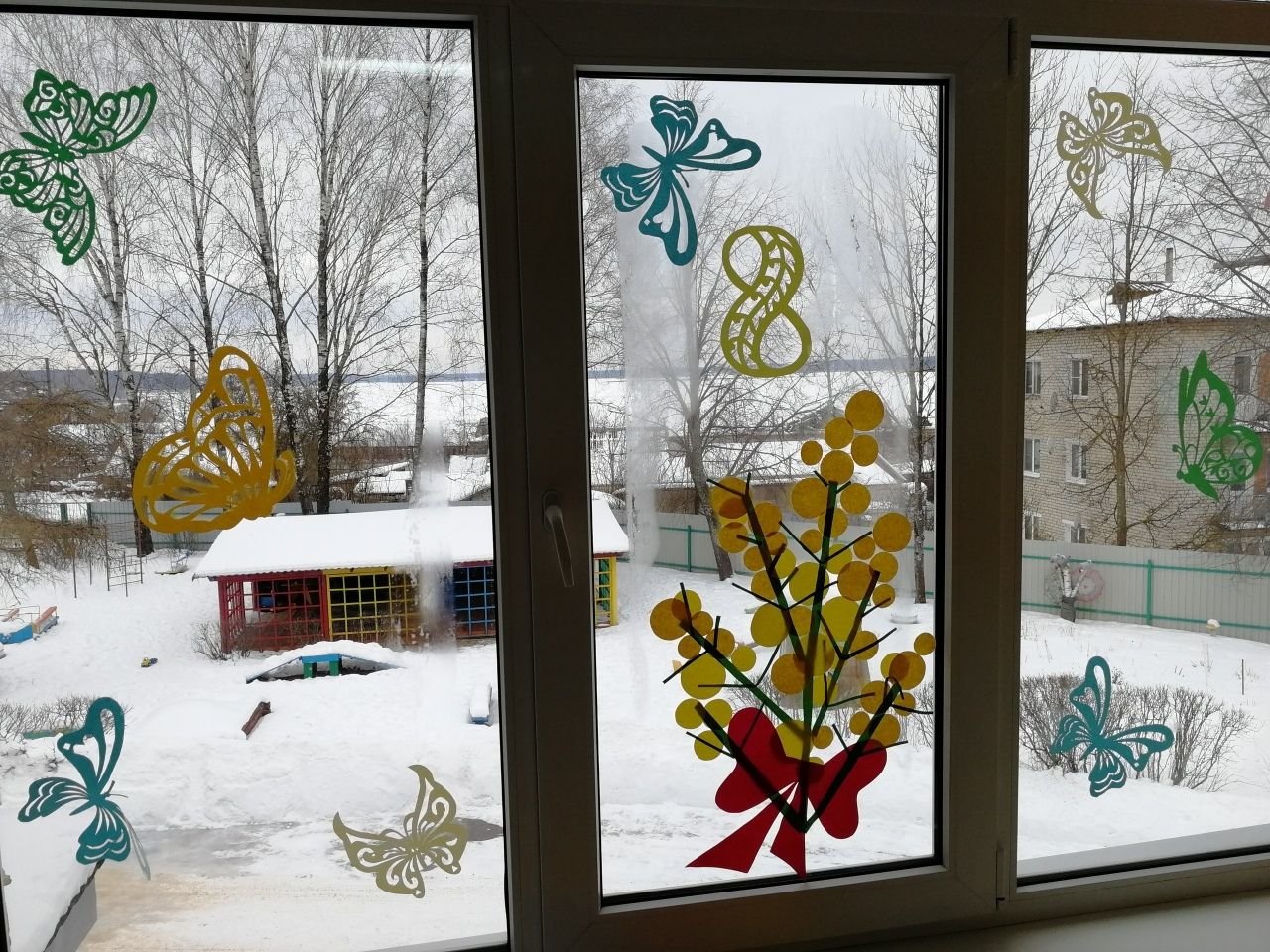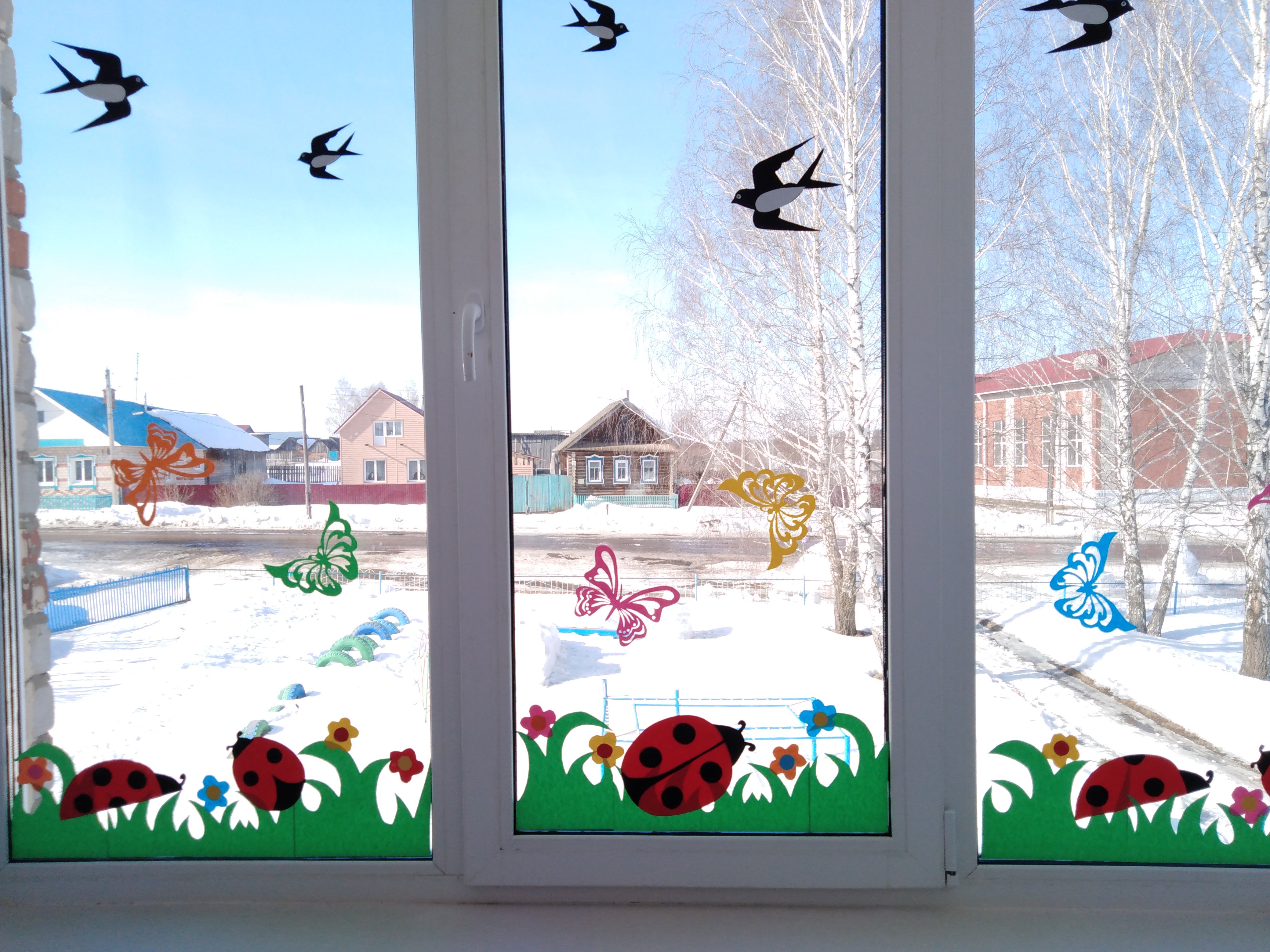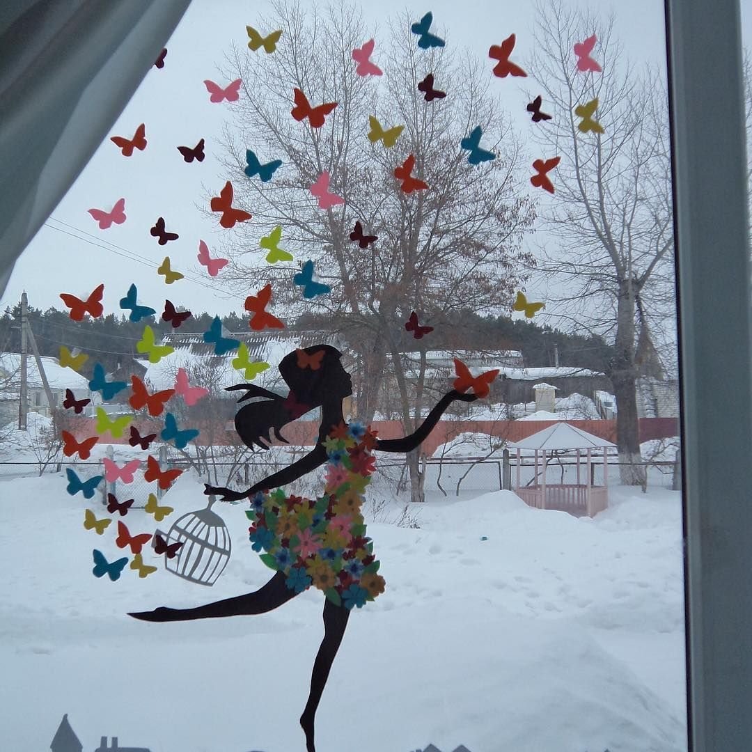 Украшение окон к весне в детском саду