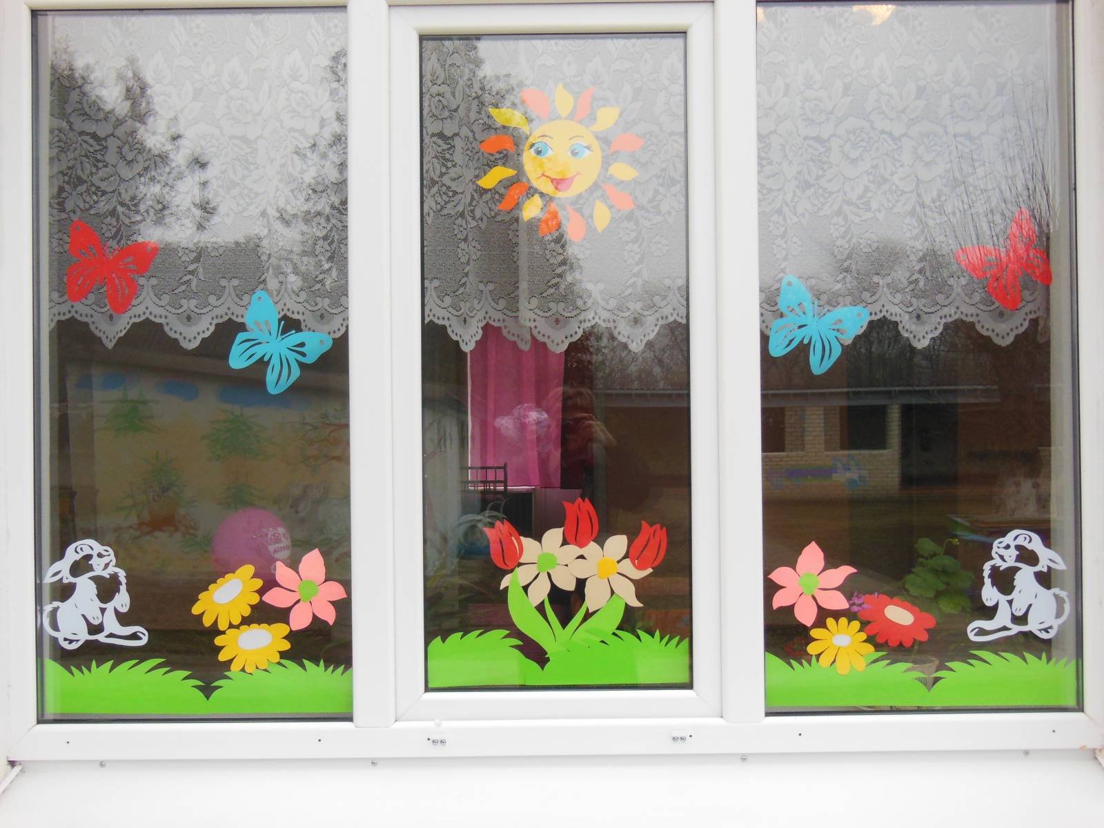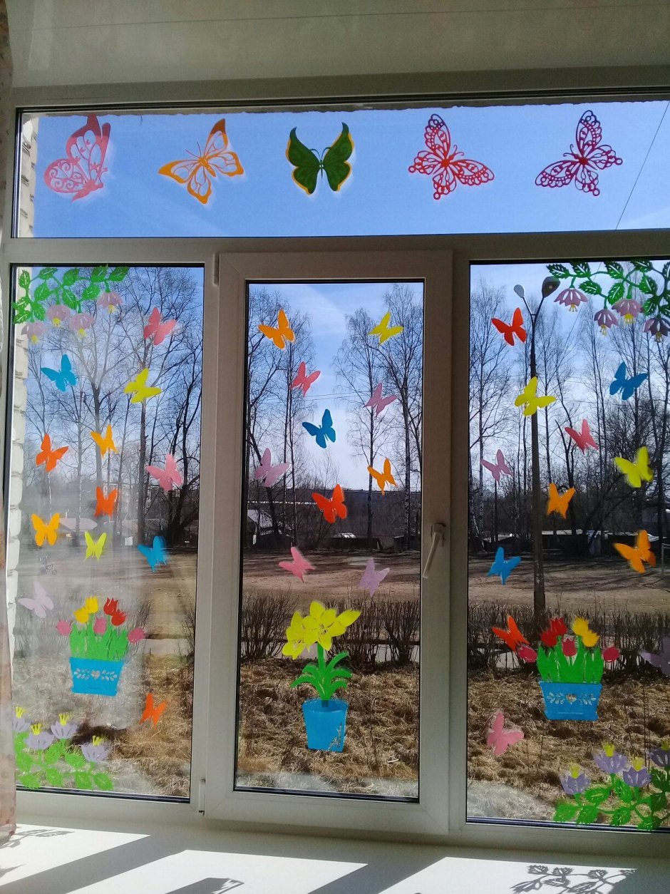 Украшение окон весной в детском саду