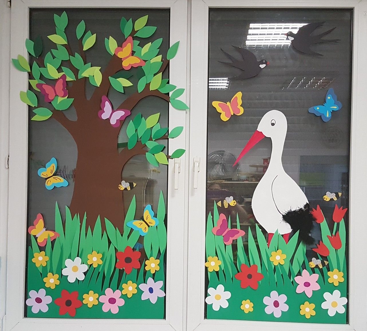 Весеннее украшение окон в детском саду