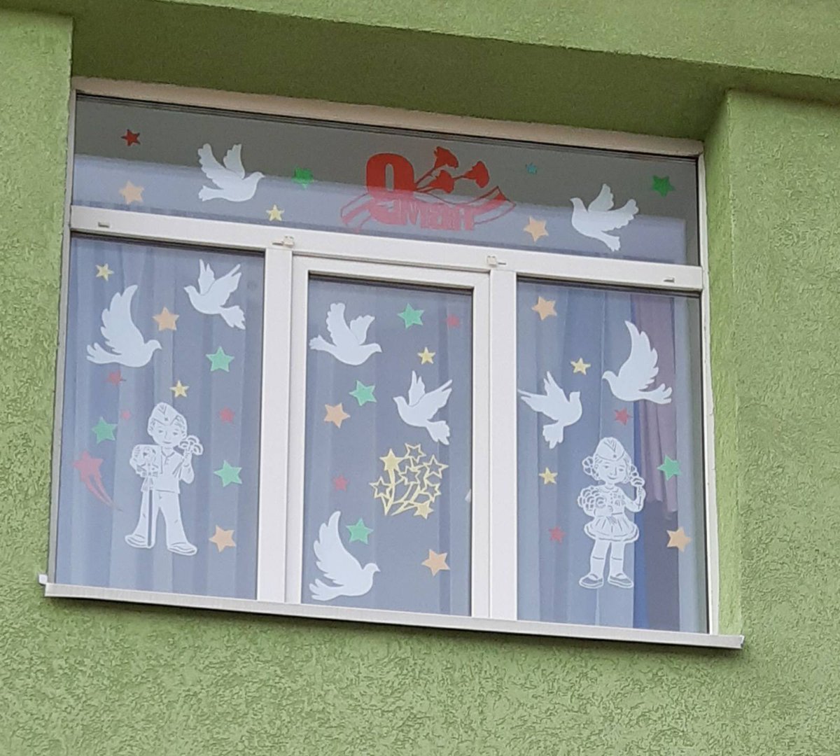 Украшение окон к 9 мая в детском саду