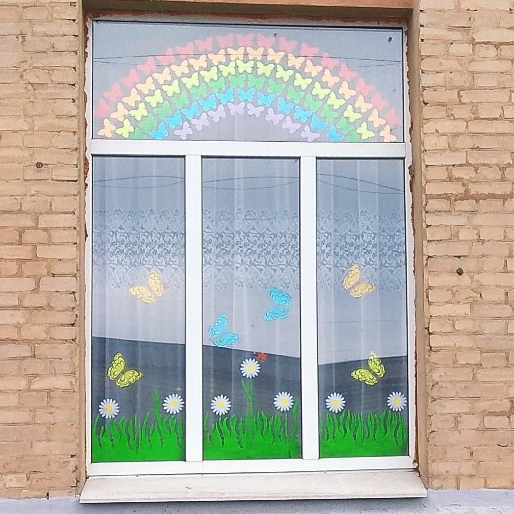Украшение окон в детском саду лето