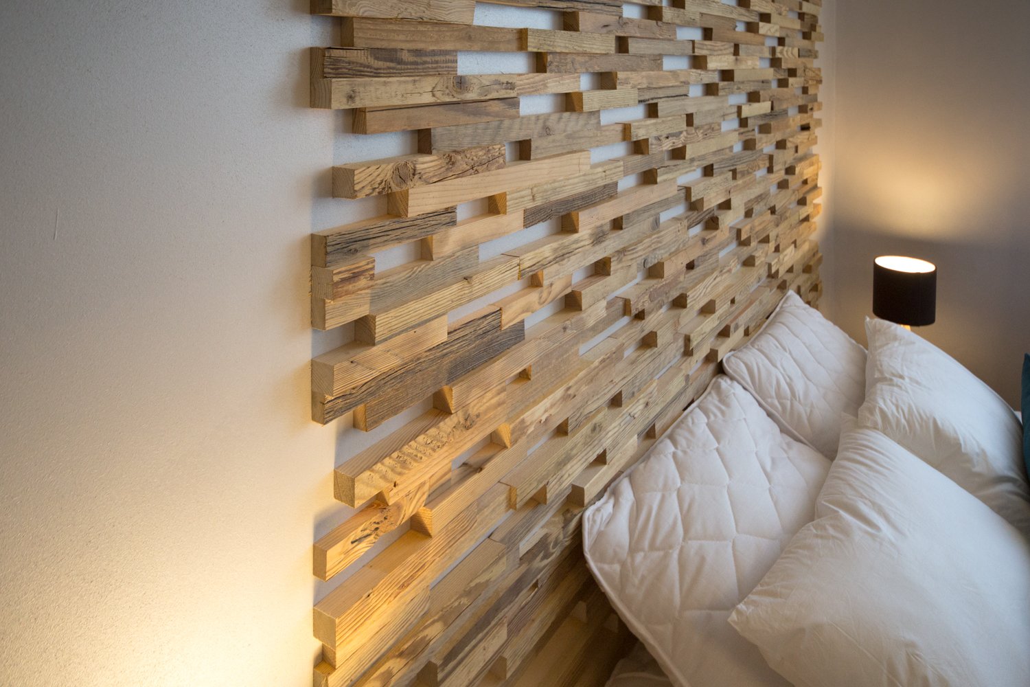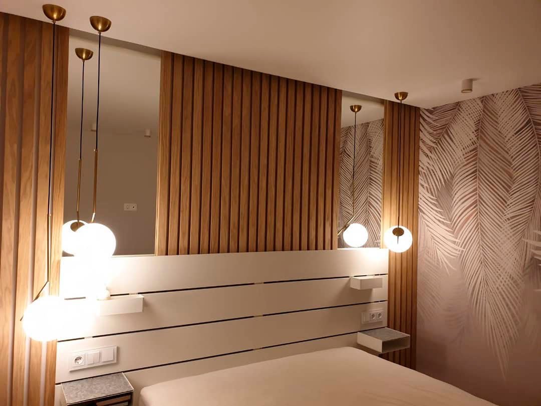 Деревянные рейки в спальне