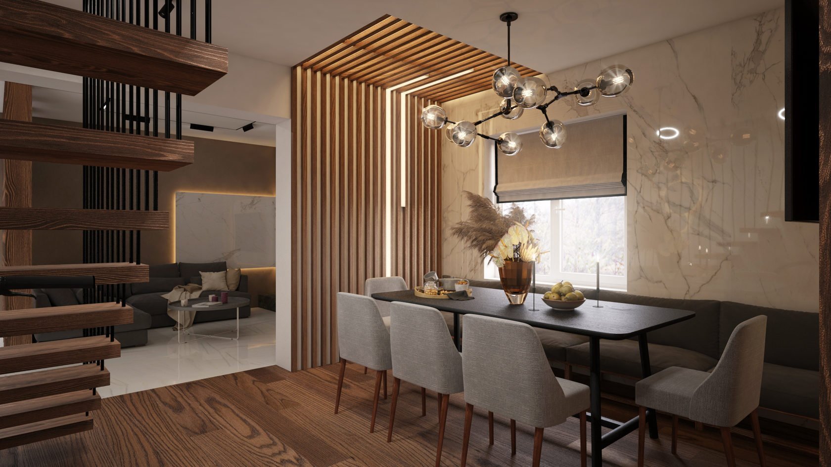 Деревянные рейки в интерьере кухни