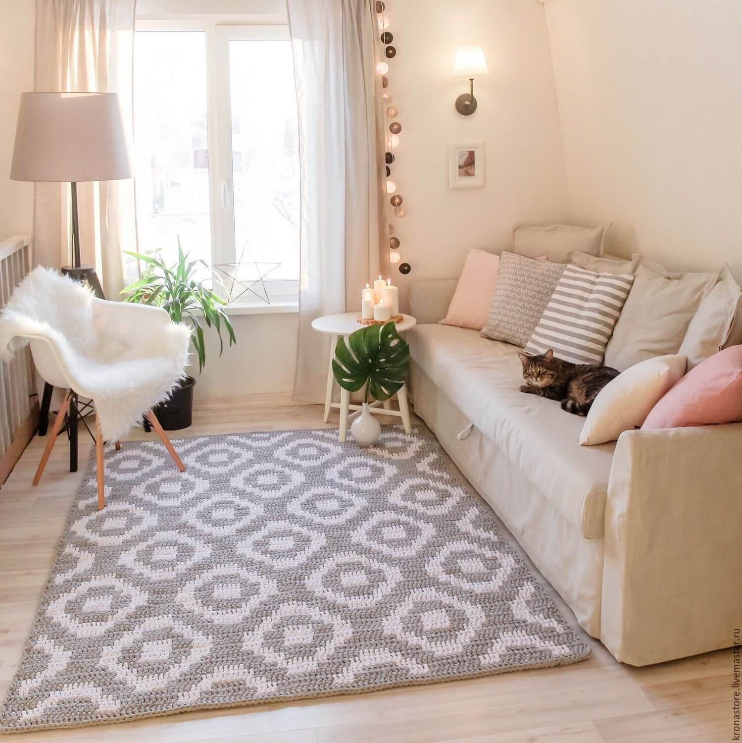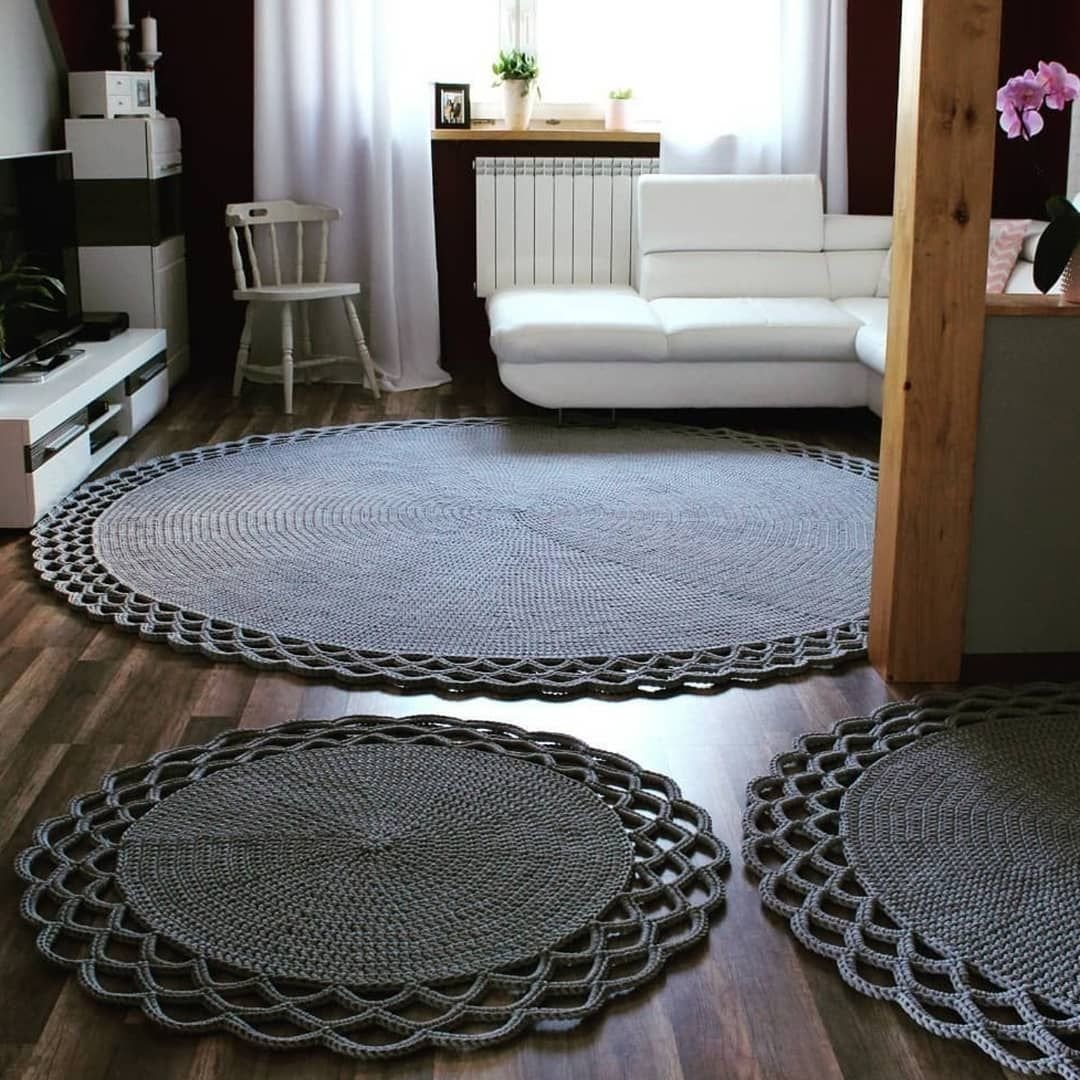 Круглые вязаные коврики в интерьере