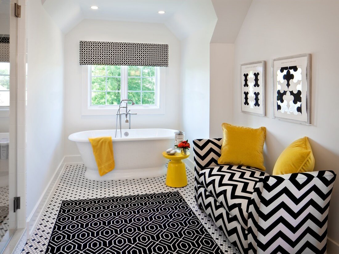 Белая ванная комната с яркими акцентами