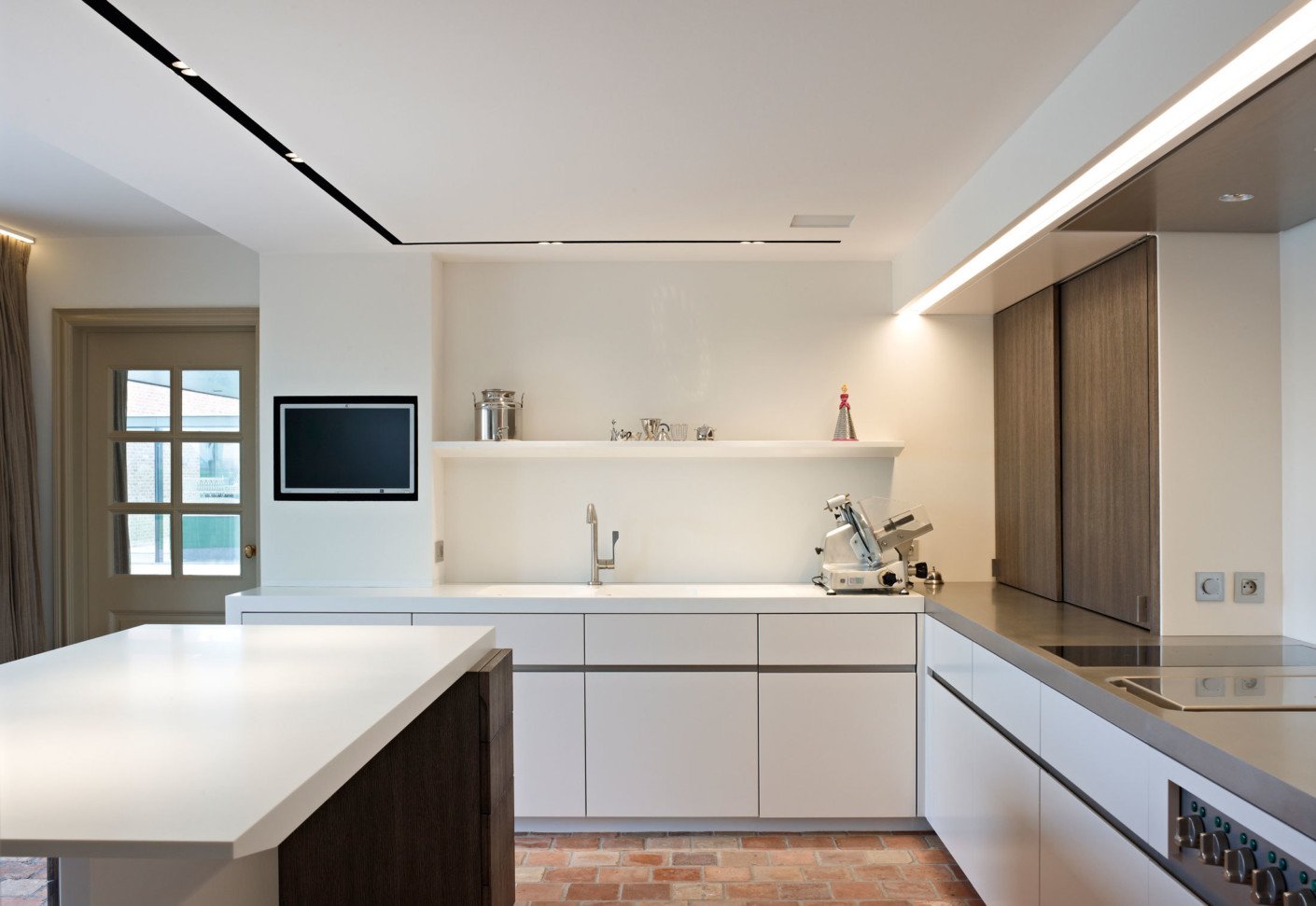 Магнитный трековый встраиваемый шинопровод в интерьере