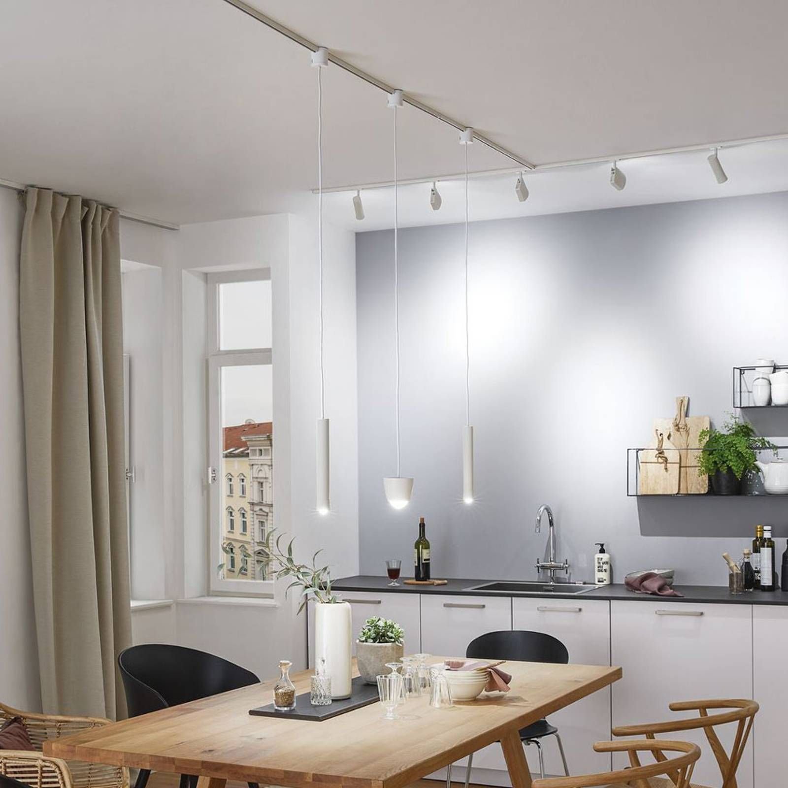 Трековые светильники на кухне