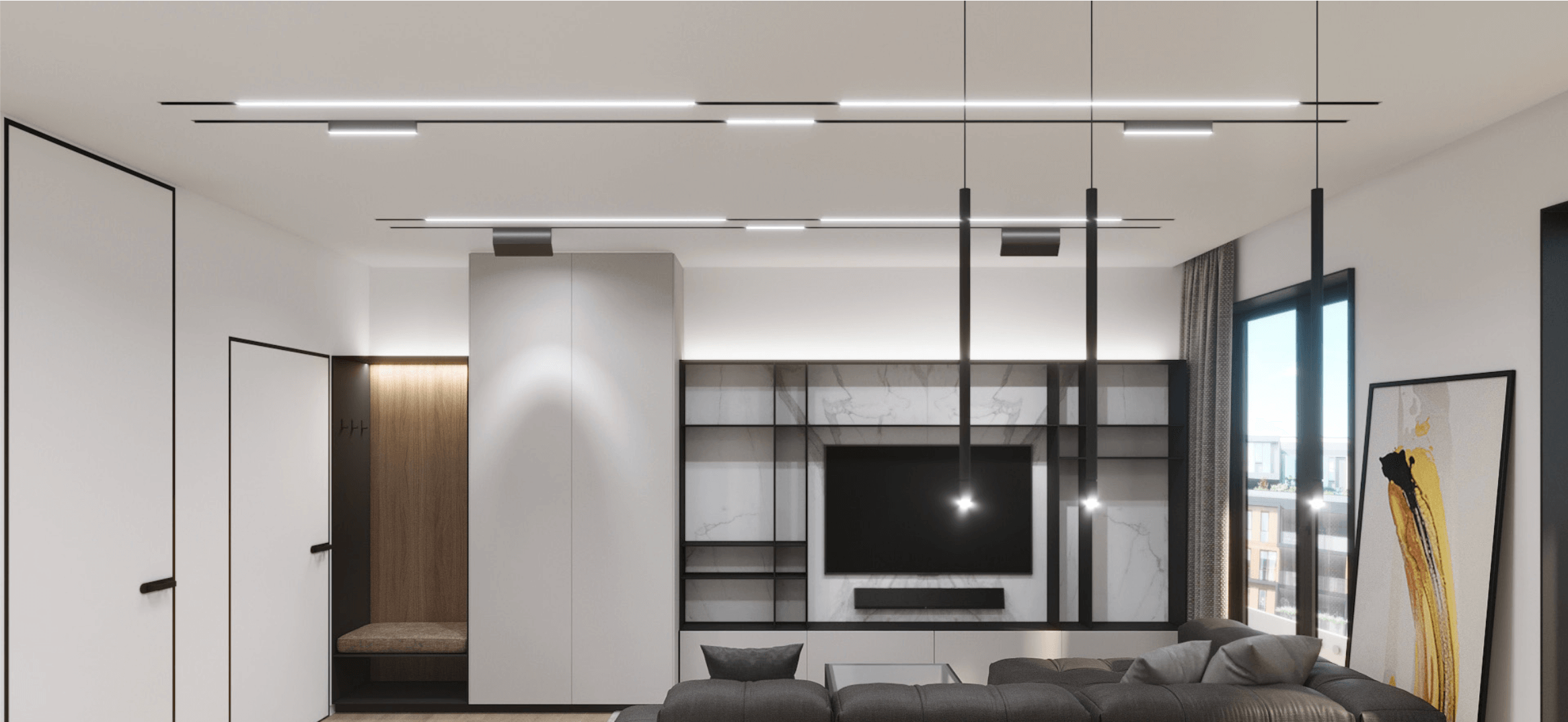 Магнитный трековый шинопровод в интерьере