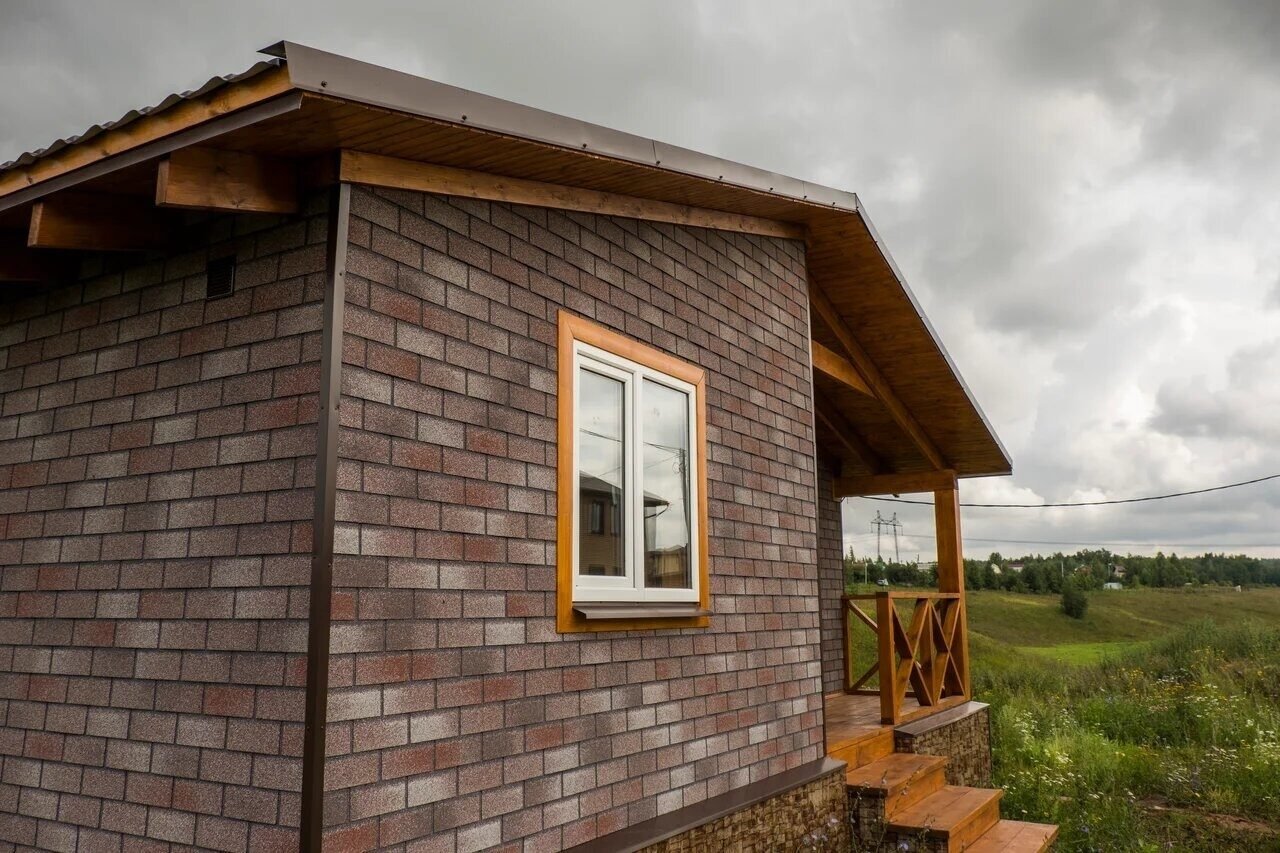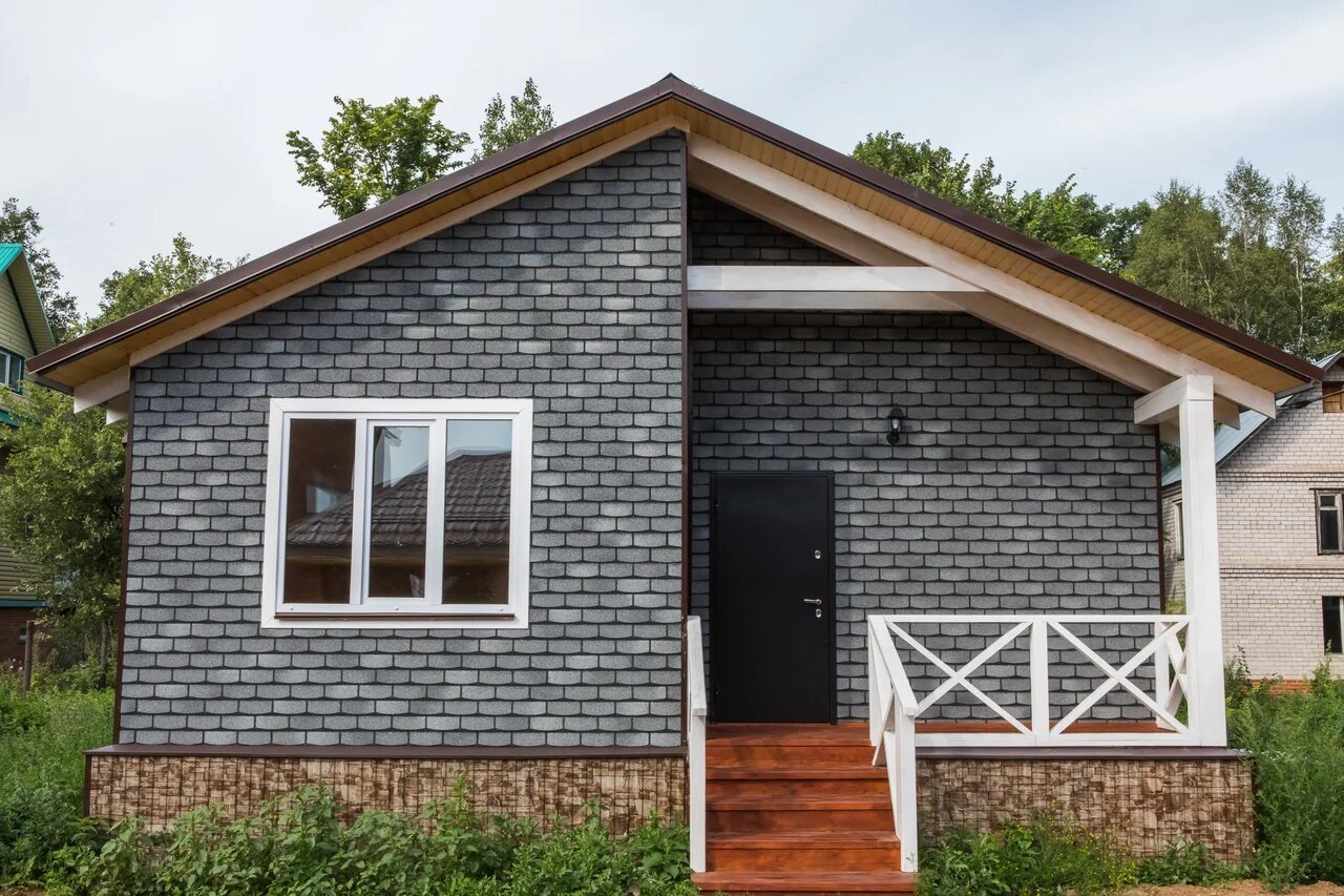 Отделка фасада мягкой кровлей