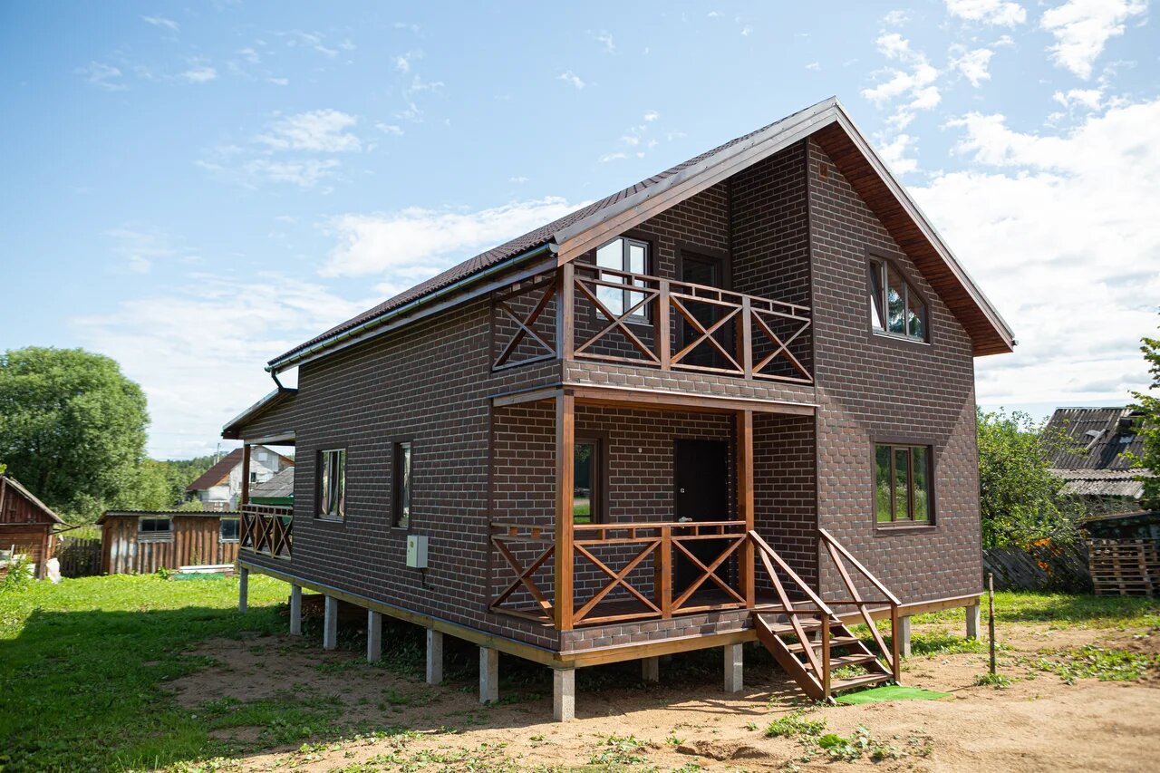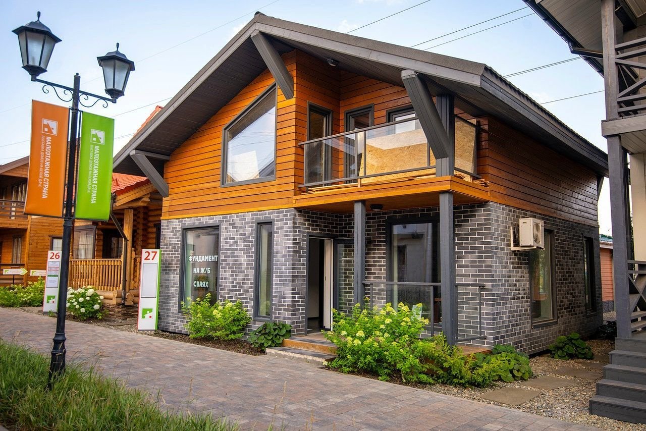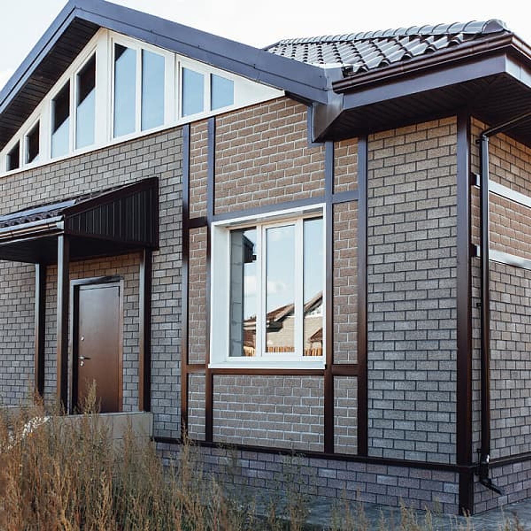 Отделка фасада кирпичом и деревом