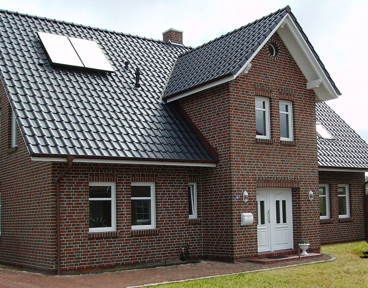 Красный дом с серой крышей