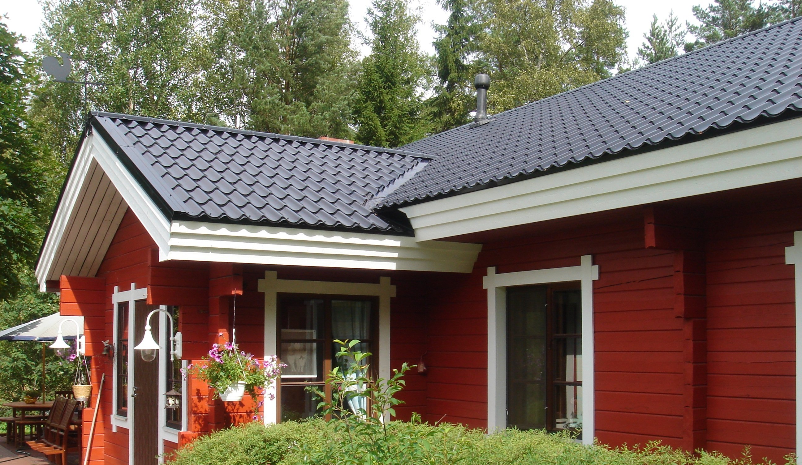 Металлочерепица RAL 7024 на деревянном доме