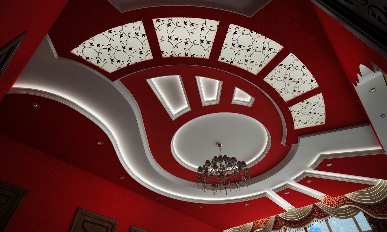Фигурный потолок из гипсокартона для зала Таджикистана