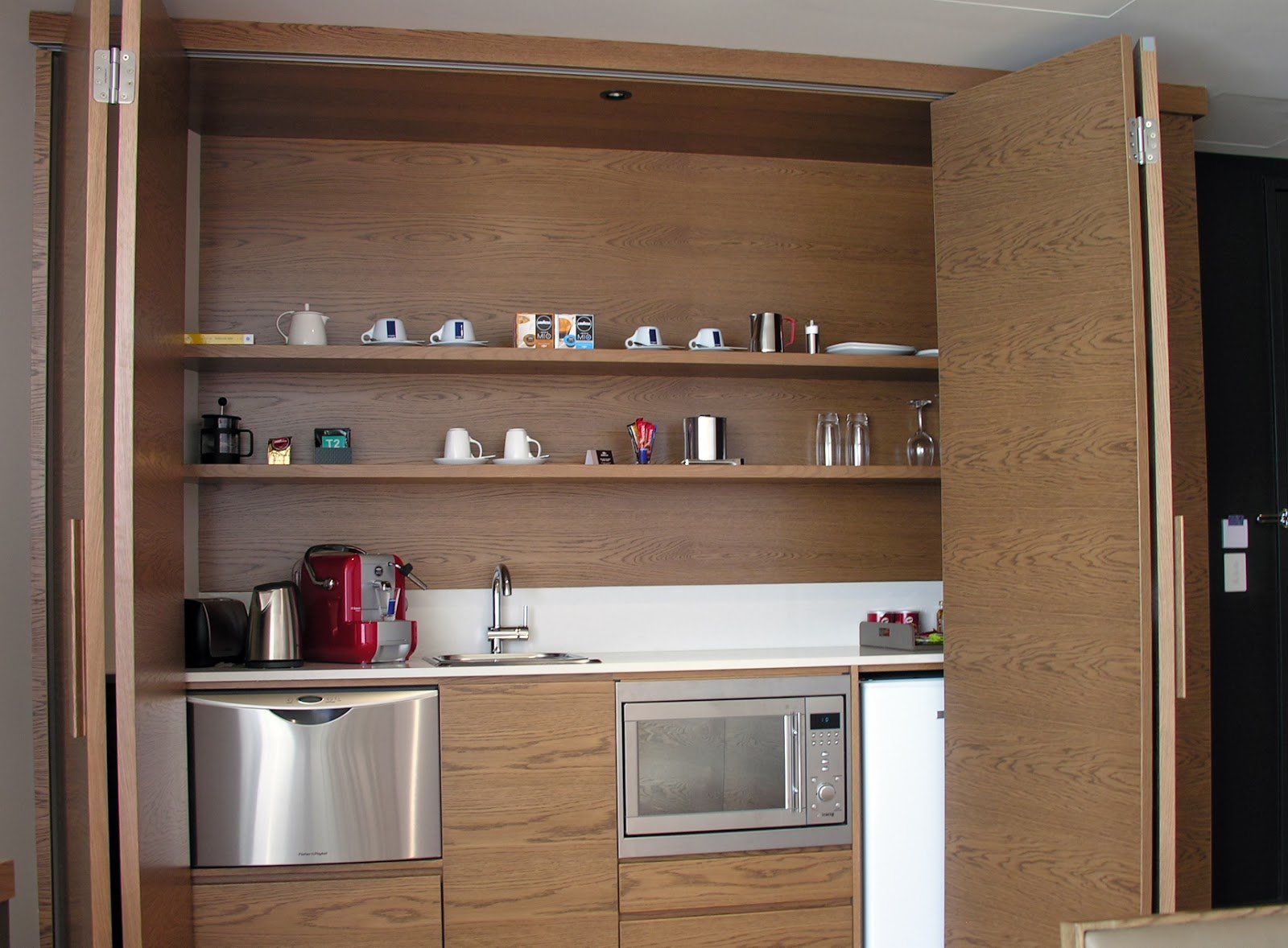 Кухня с открытыми дверцами