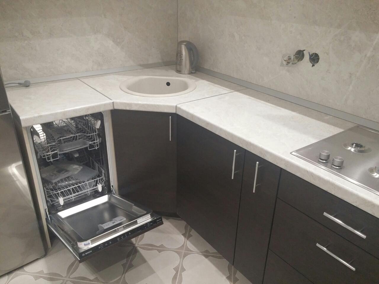 Посудомойка в угловой кухне