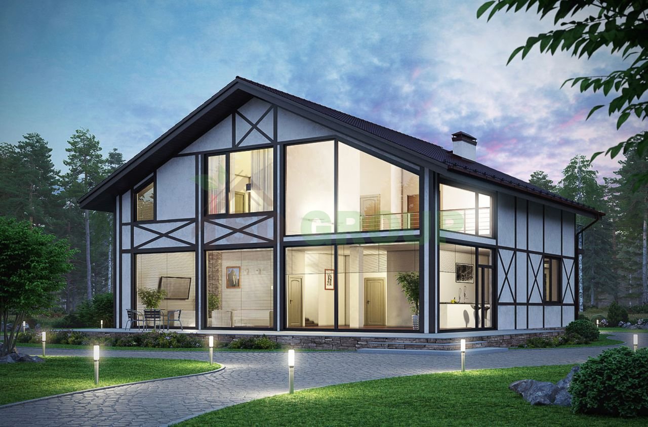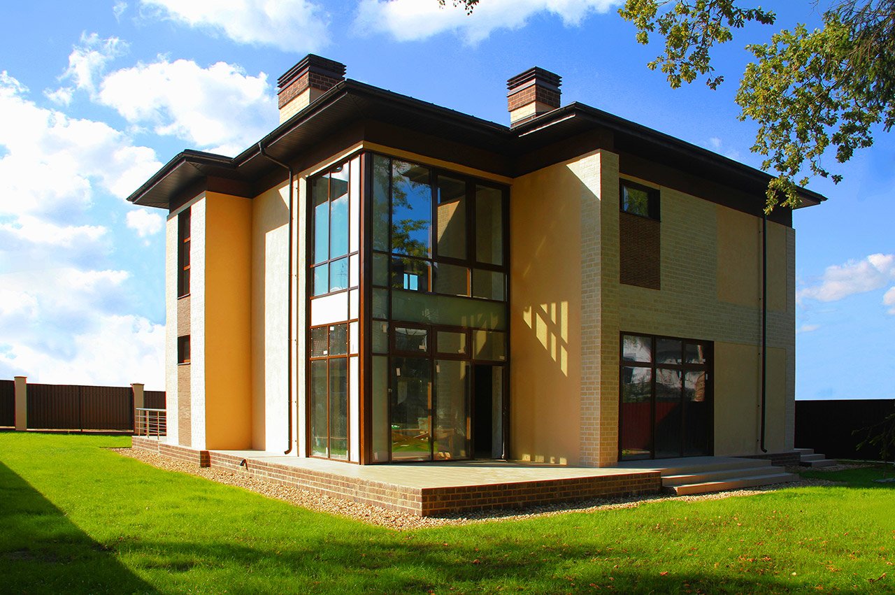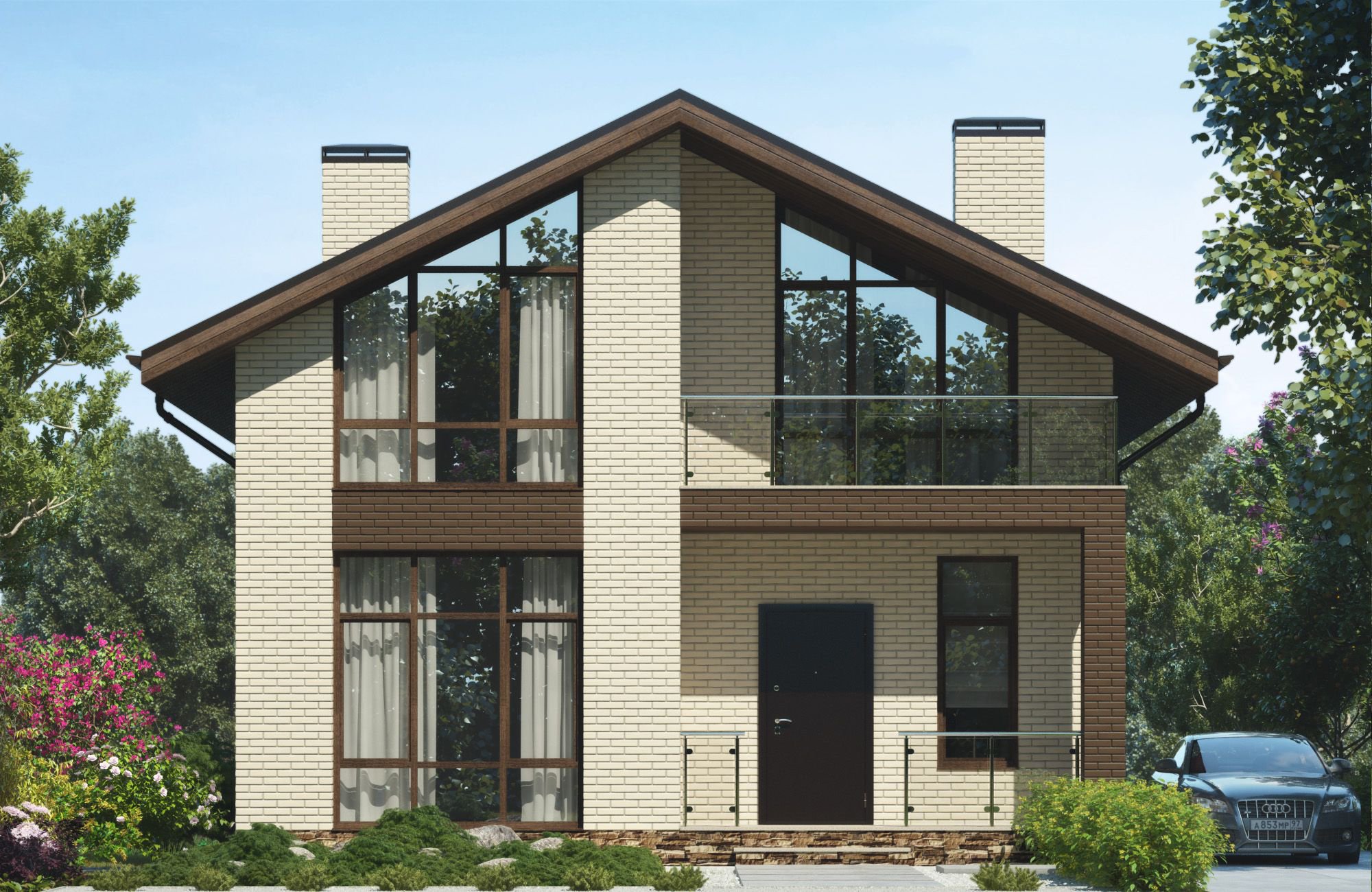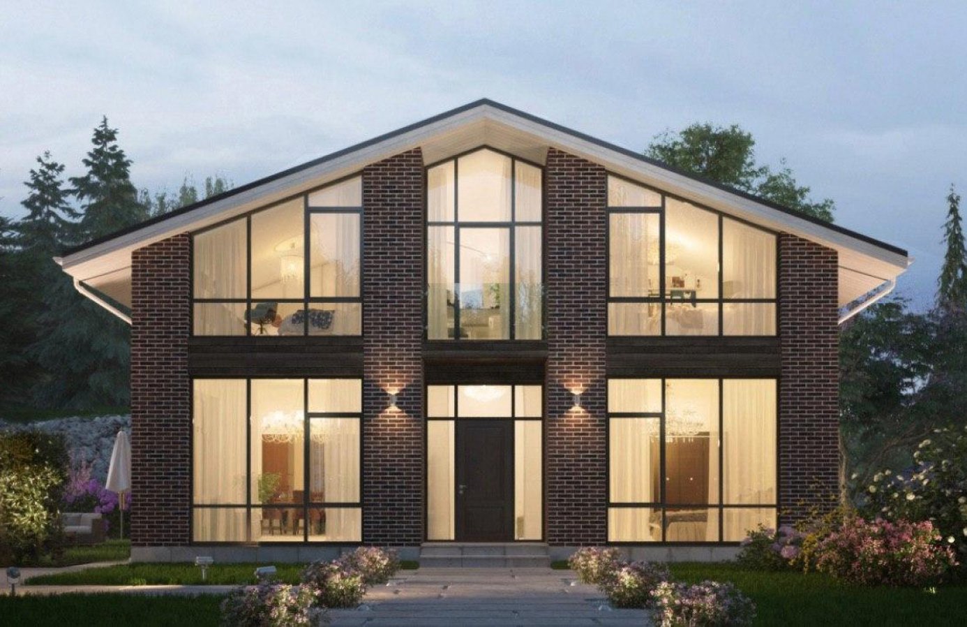 Дом с панорамными окнами двухэтажный из пеноблоков