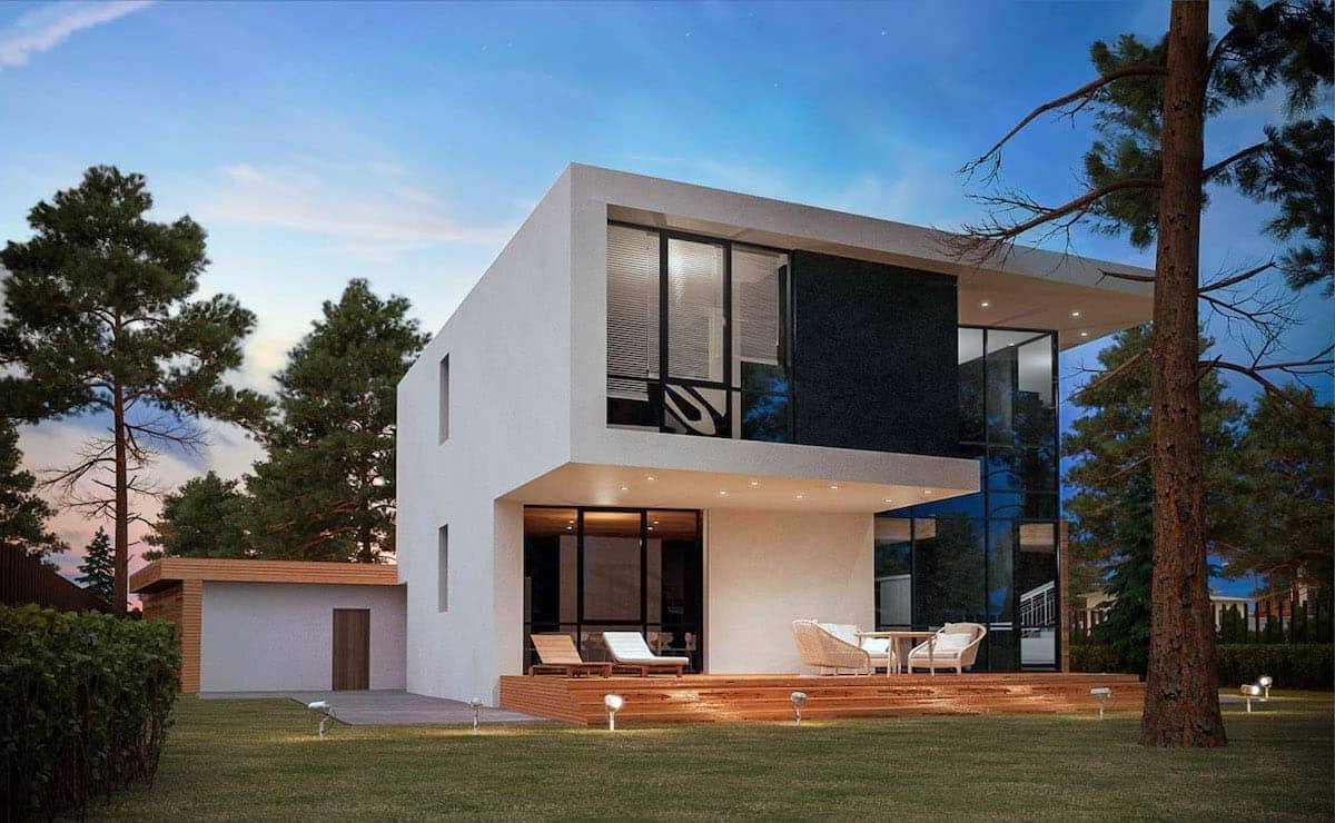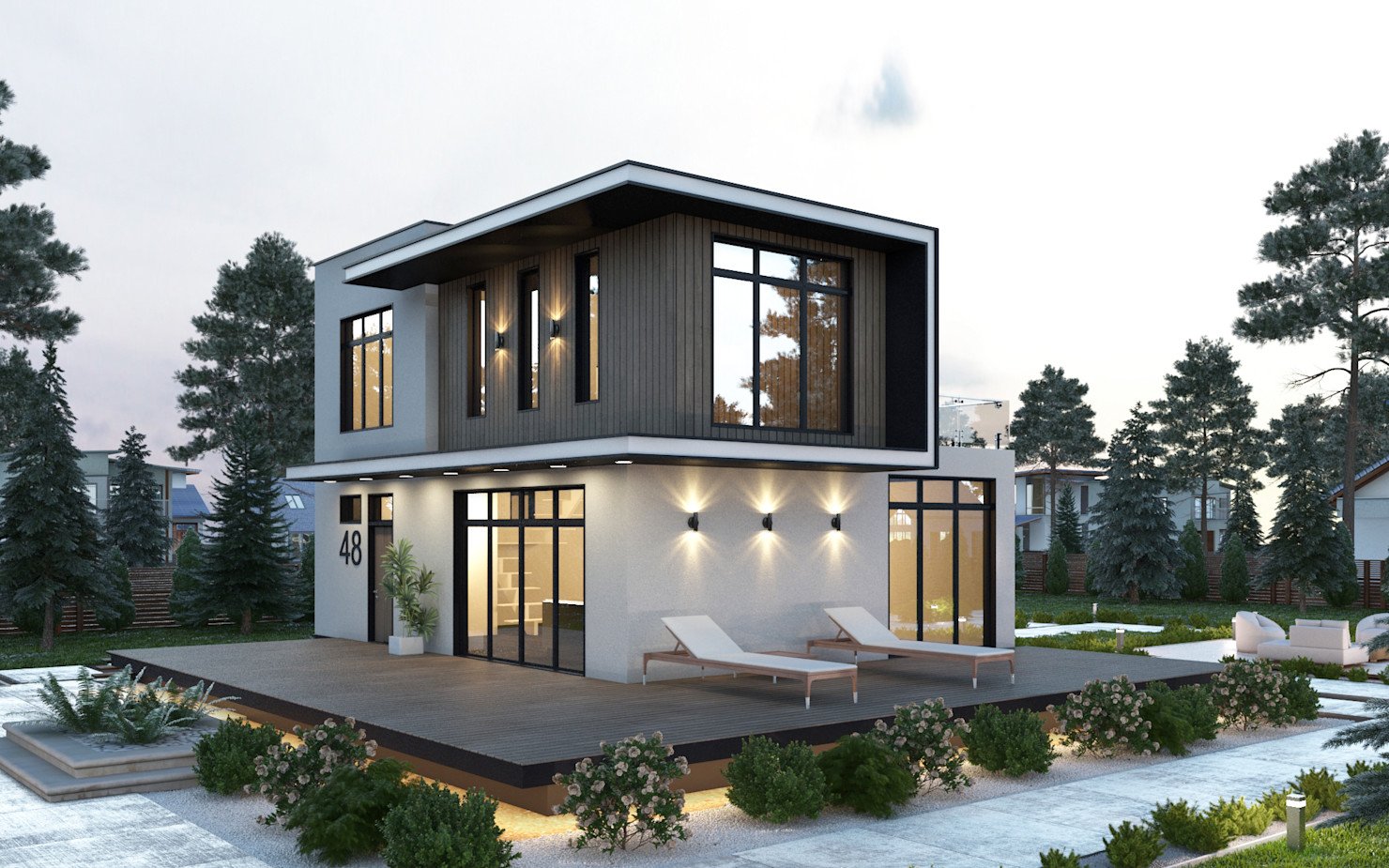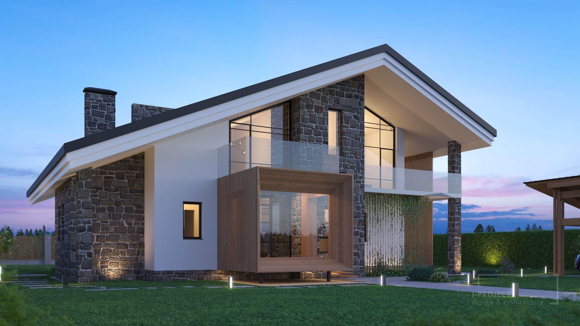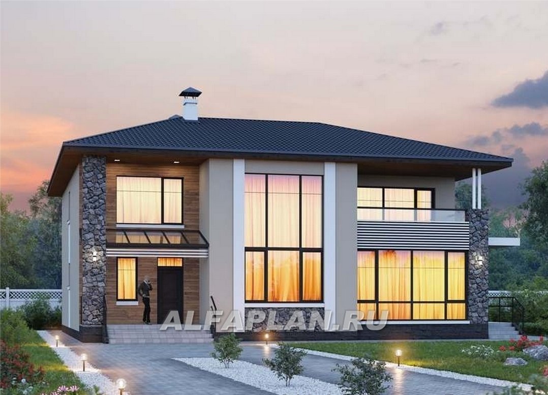 Дом с панорамными окнами двухэтажный из пеноблоков