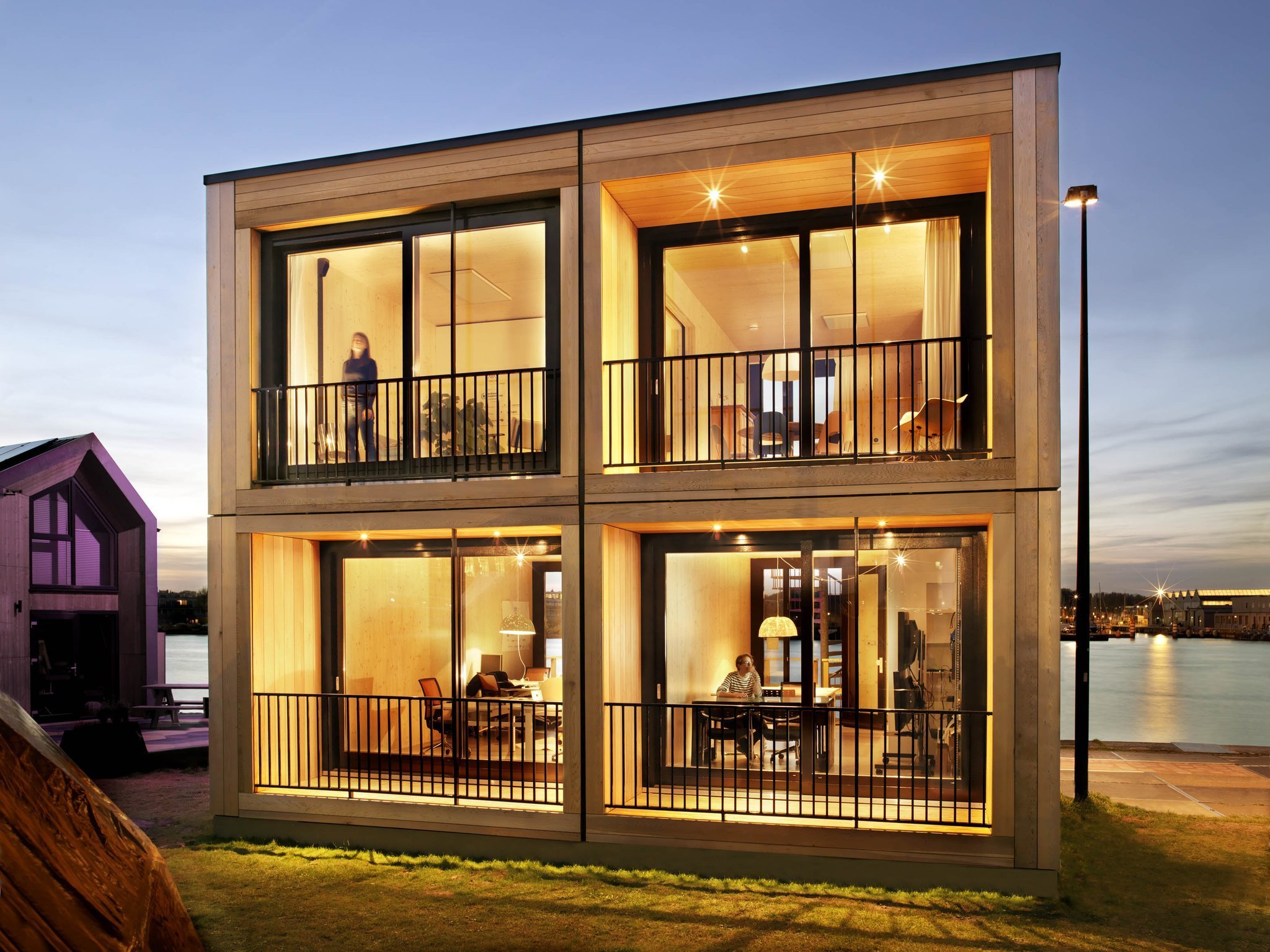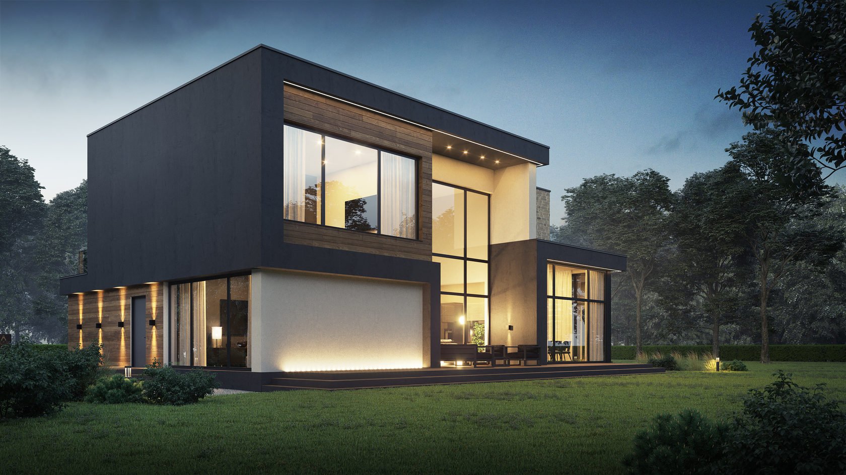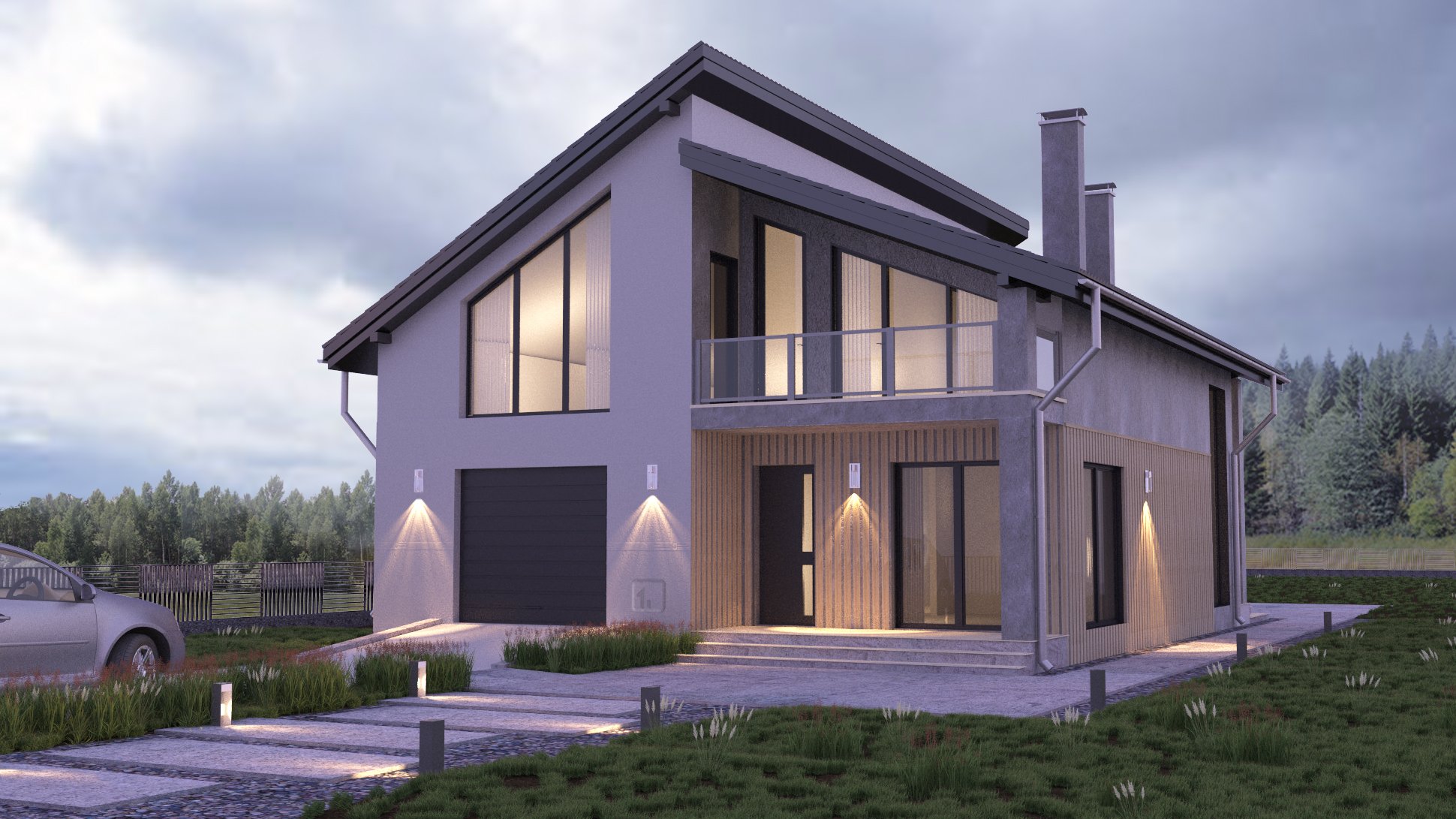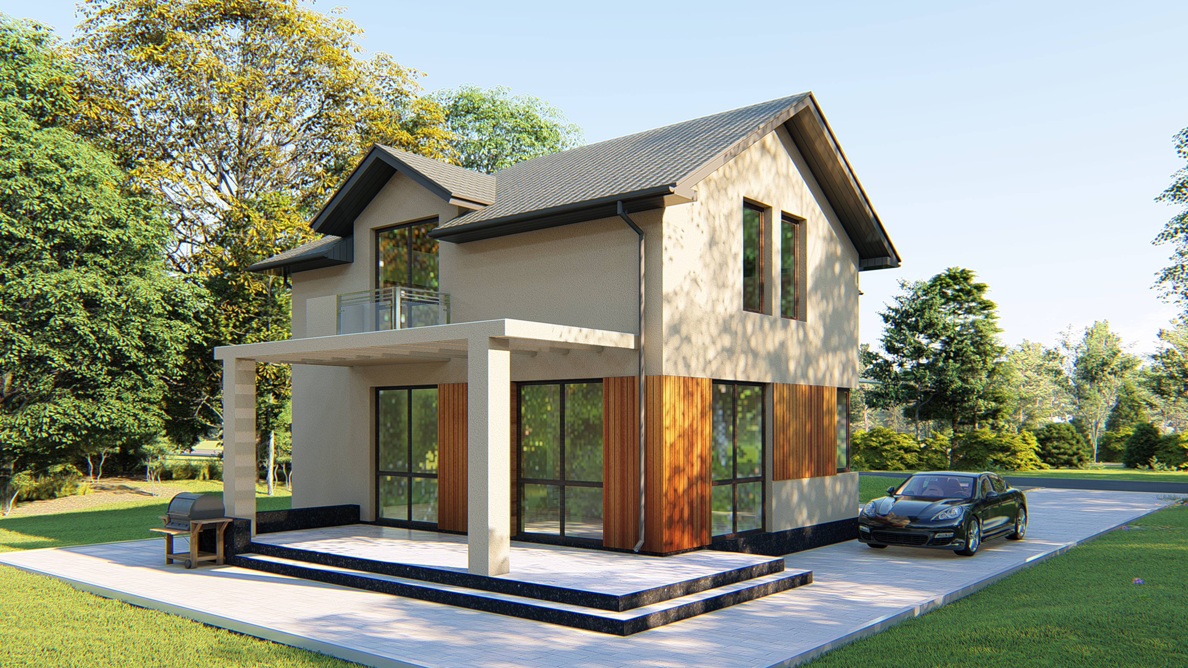 Дом с панорамными окнами двухэтажный из пеноблоков