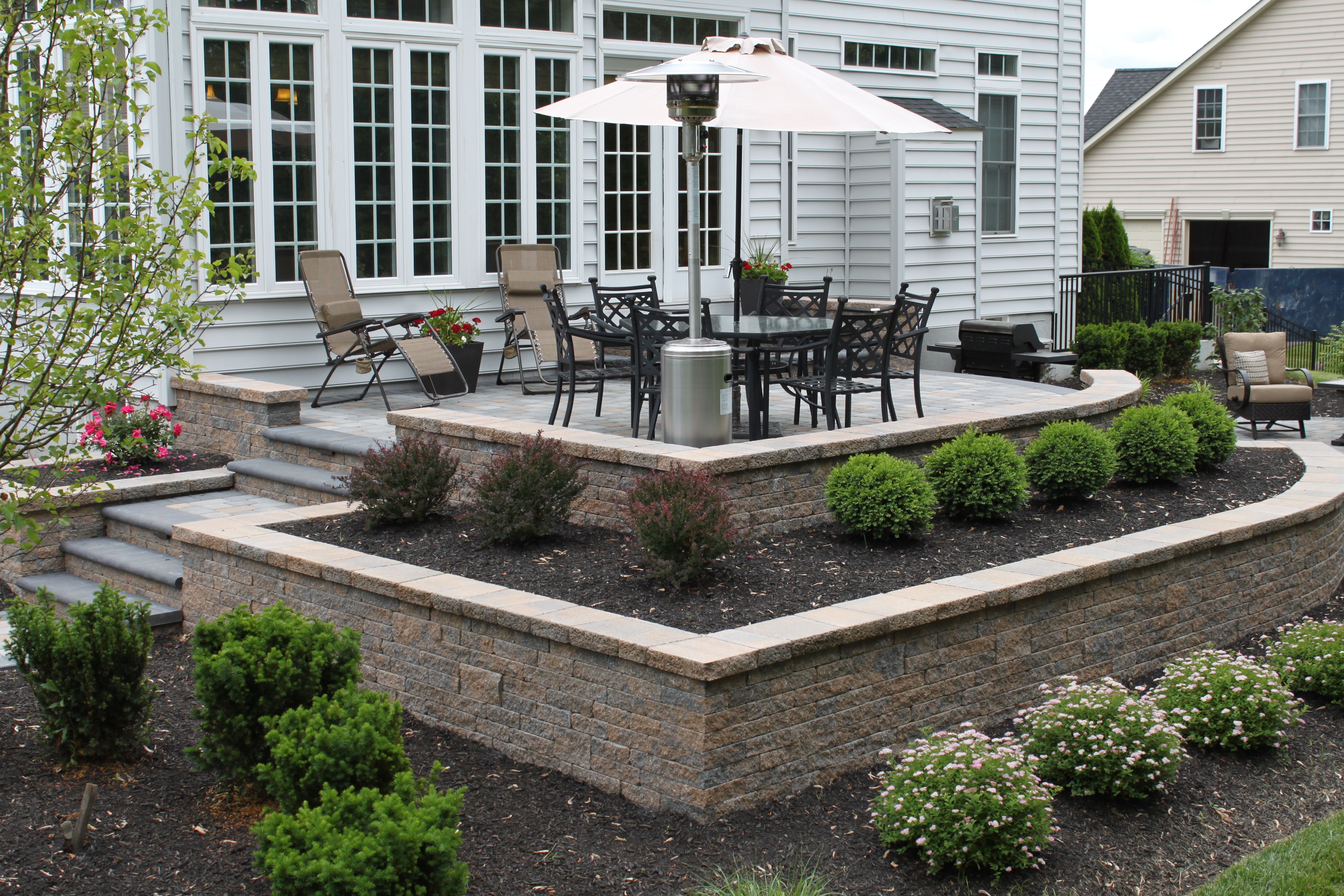 Патио с подпорными стенками