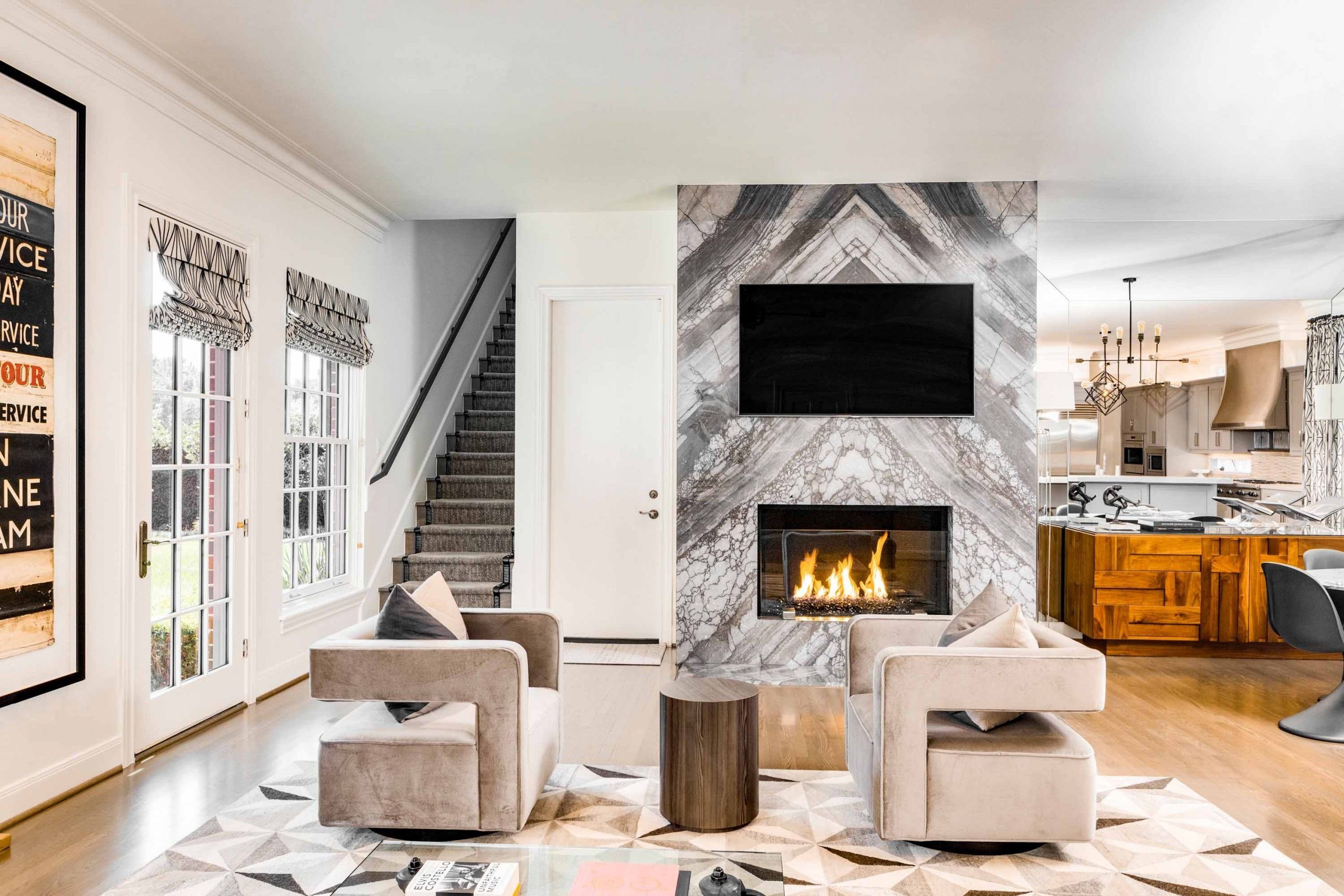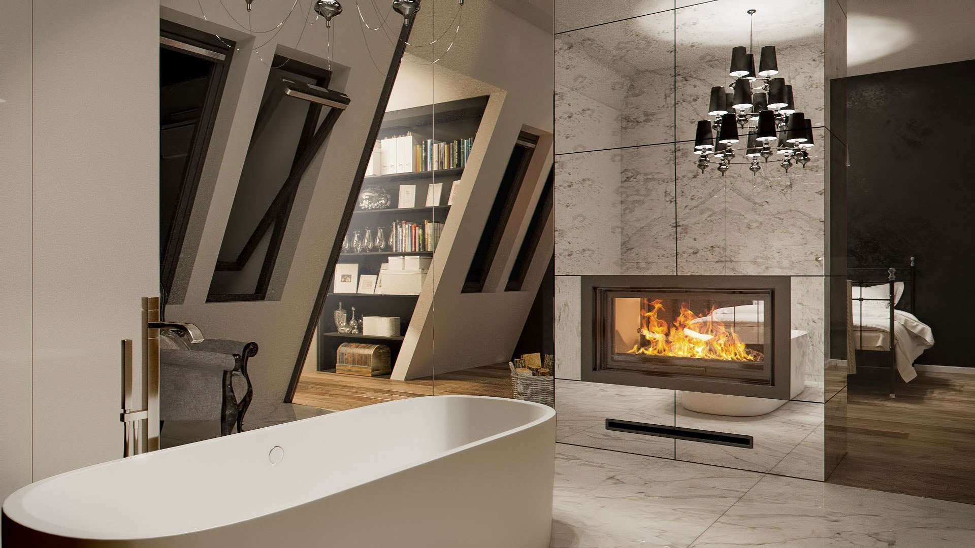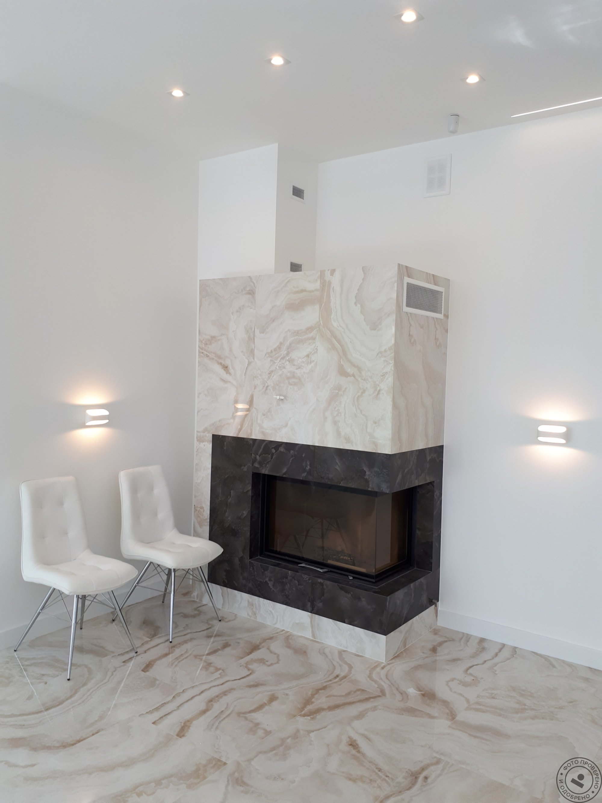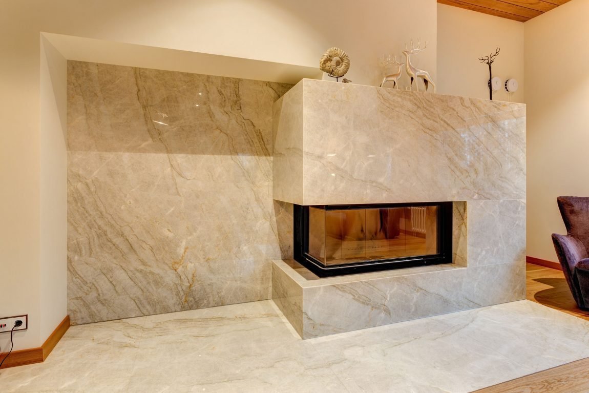 Камин в мраморе современный интерьер