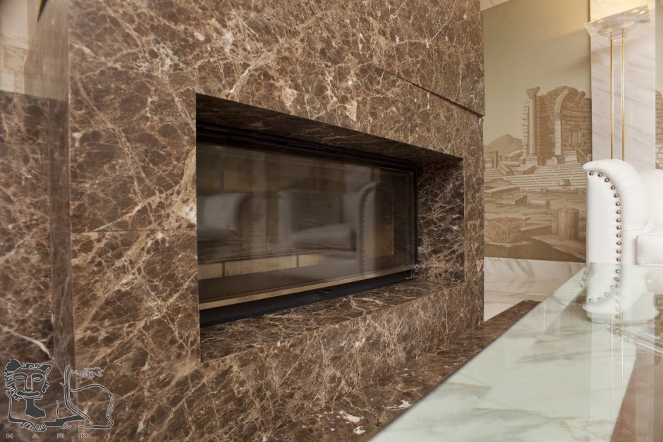 Отделка каминов мрамором