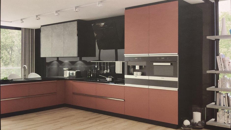 Кухня эмаль матовая 3200 ( фасад RAL 7012, каркас Пикард)