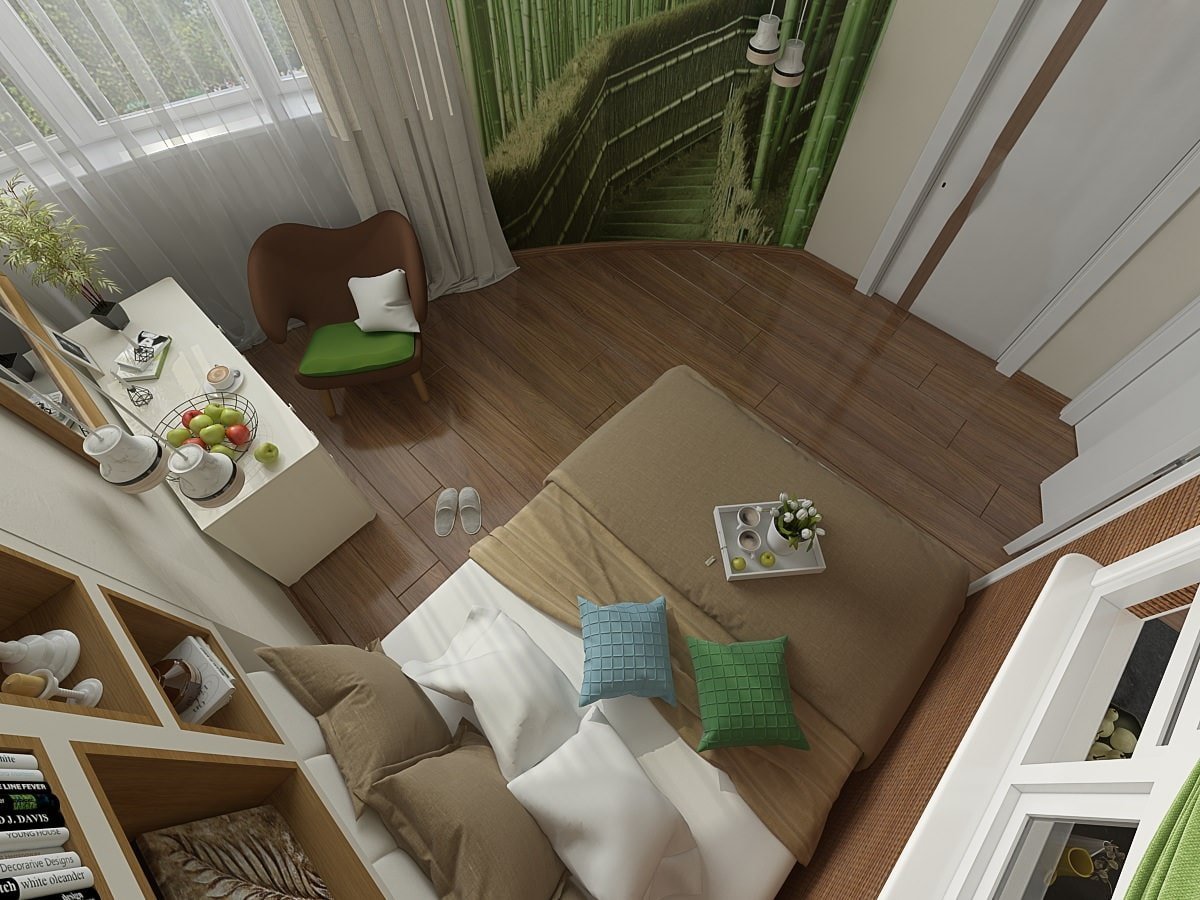 Интерьер узкой спальни
