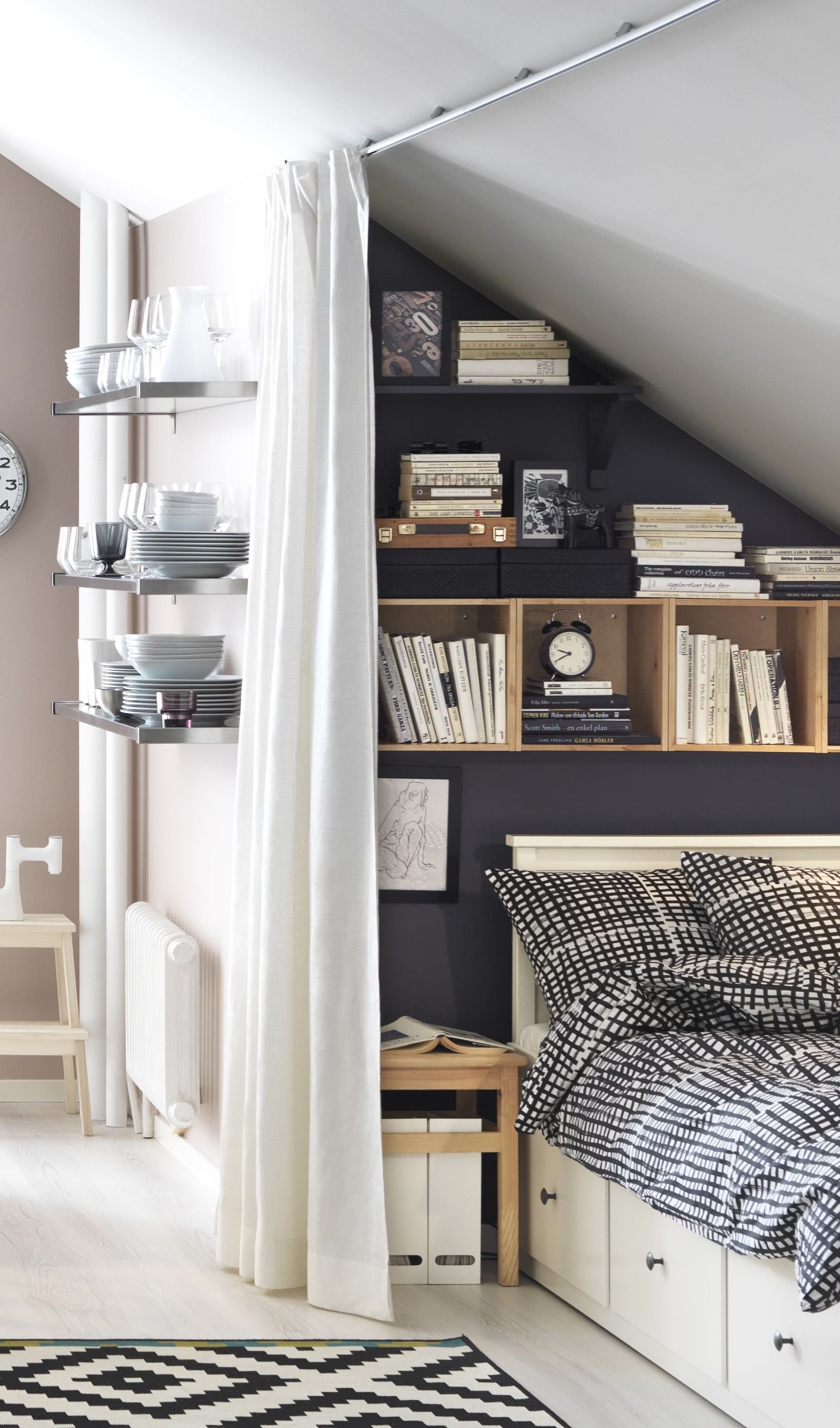 Полки в мансардной комнате