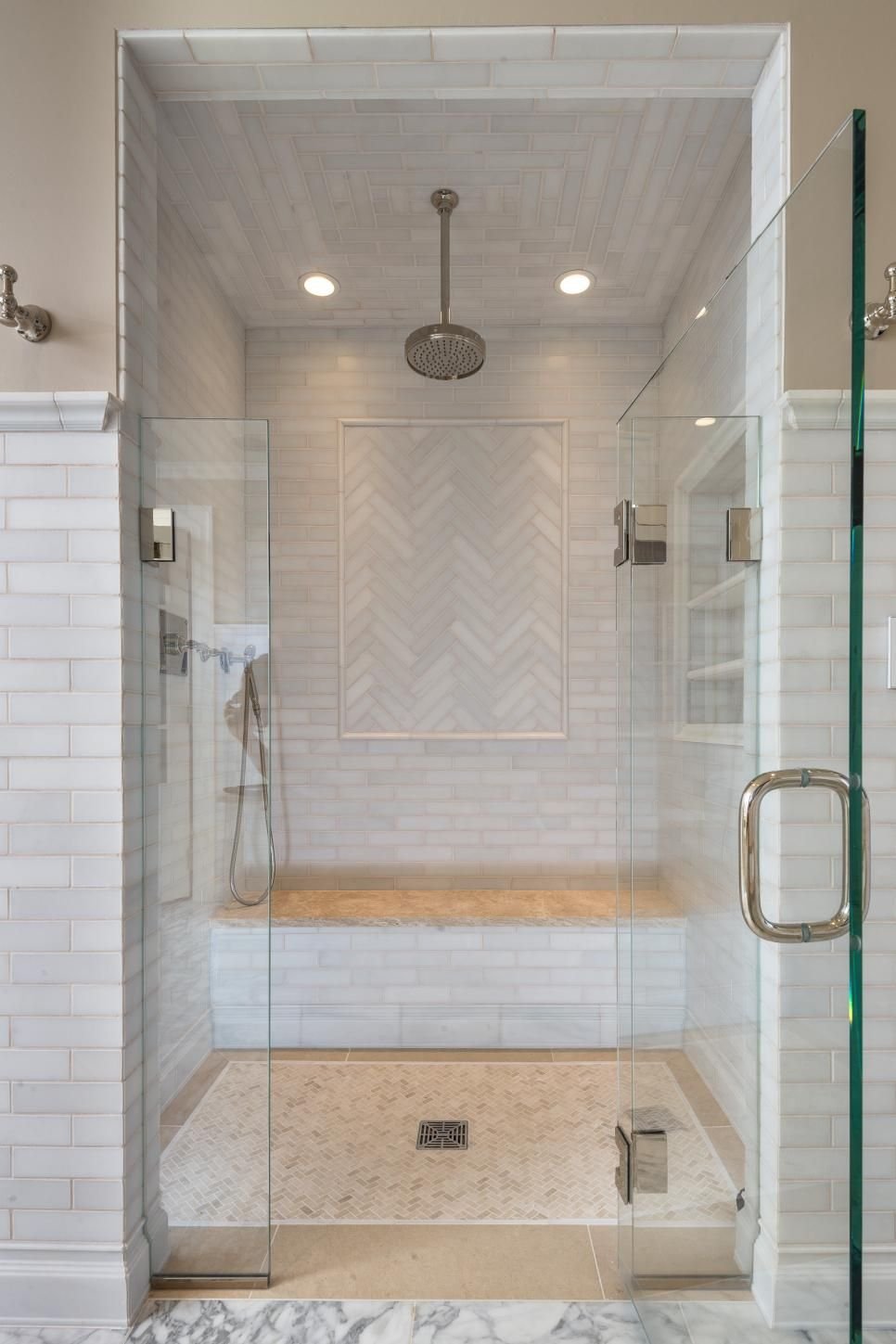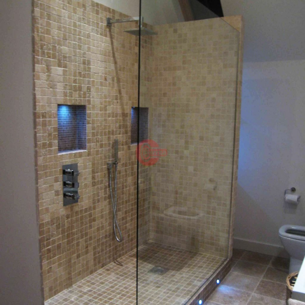 Душевая кабина из плитки со стеклянной
