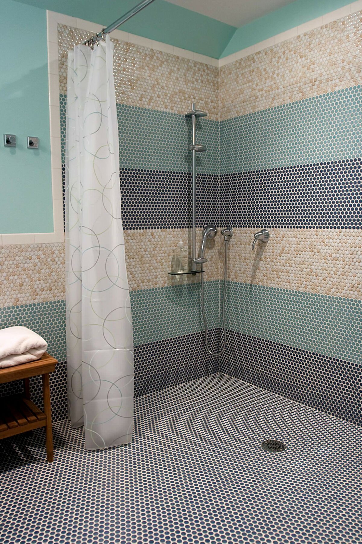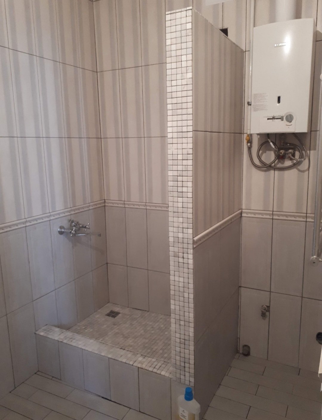 Душевая кабина из мозаики и плитки