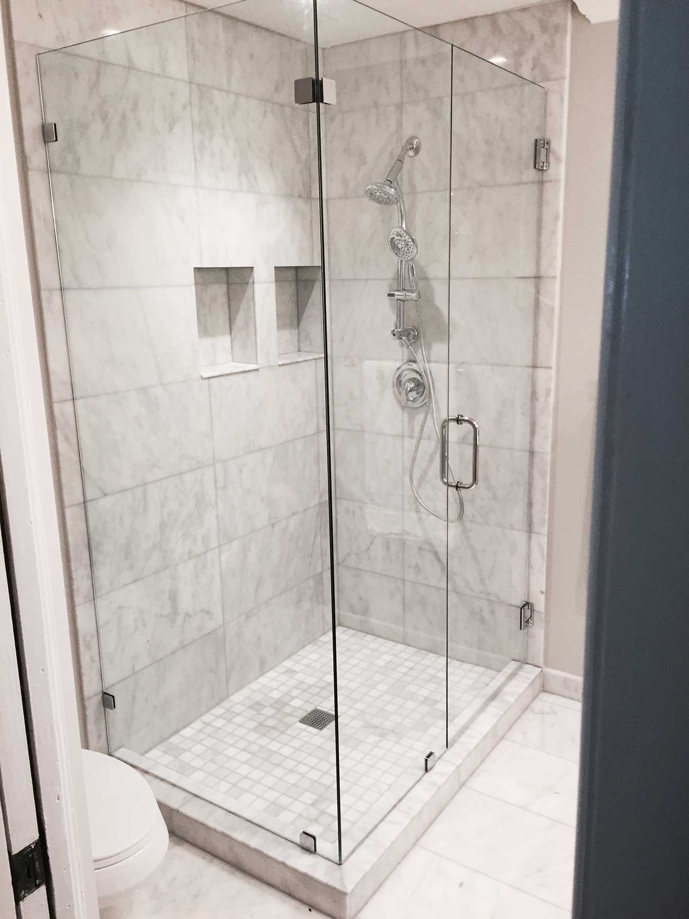Душевая из плитки со стеклянной дверью