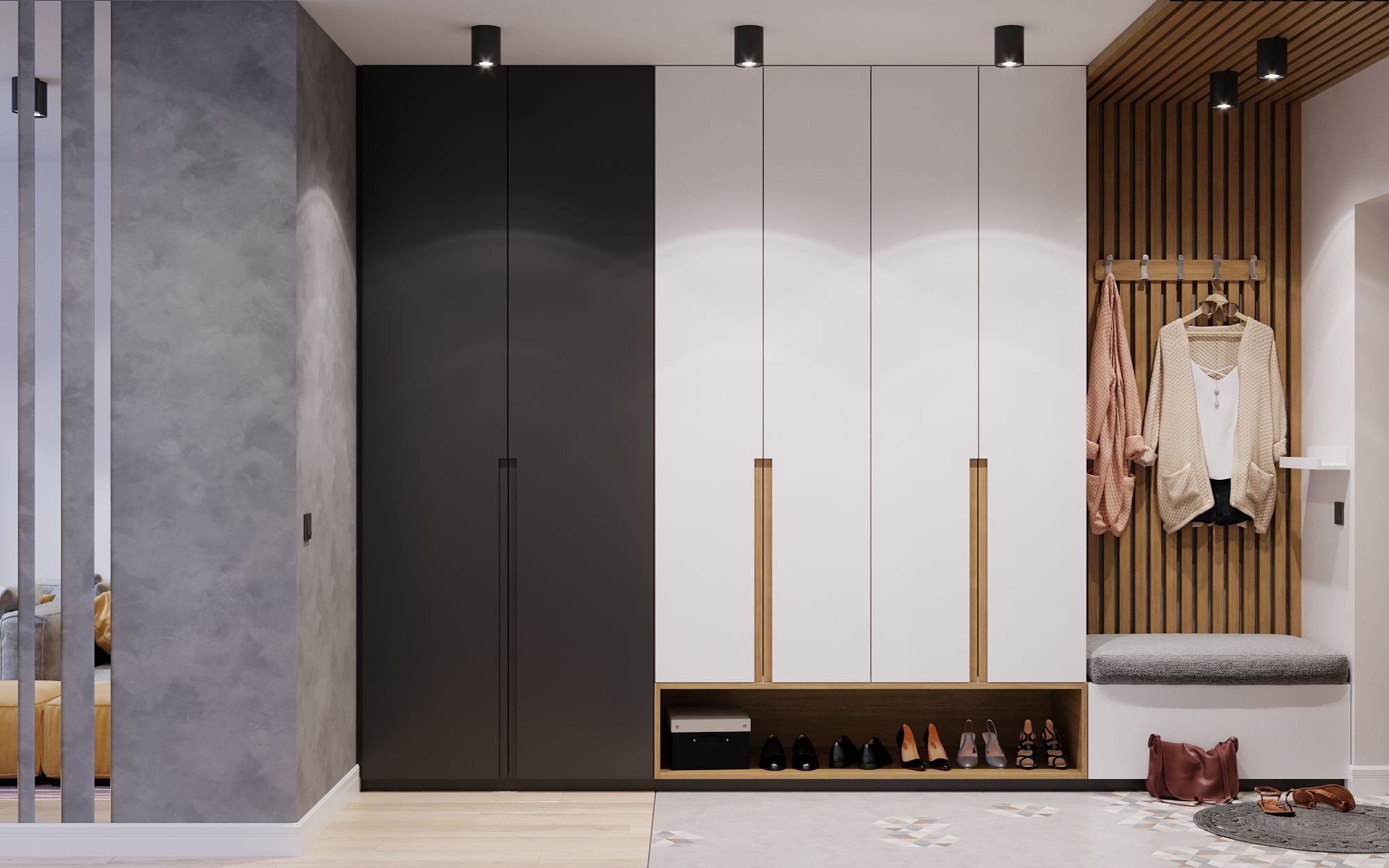 Прихожая с деревянными рейками