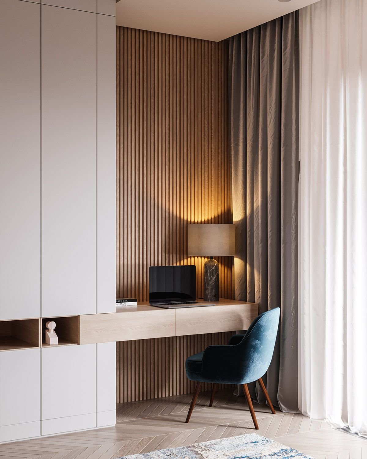 Деревянные рейки в спальне