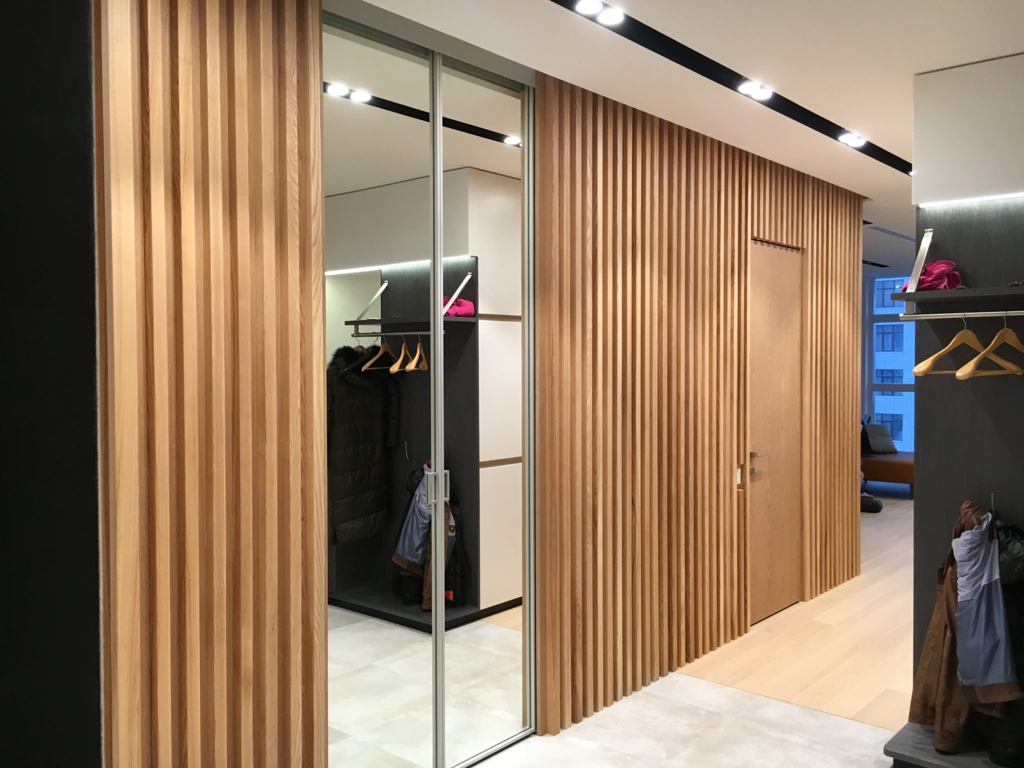Прихожая в современном стиле с рейками