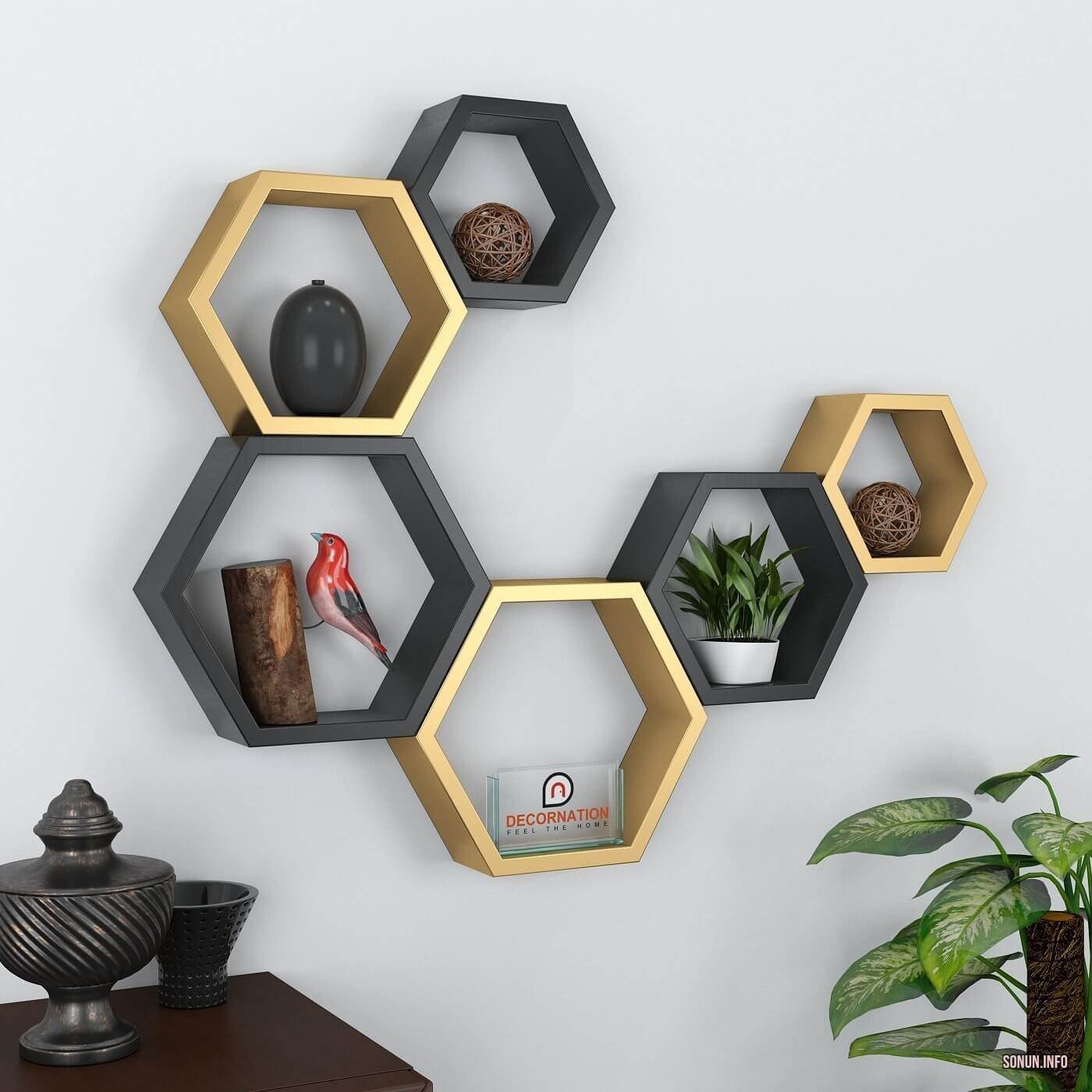 Полочки соты в интерьере