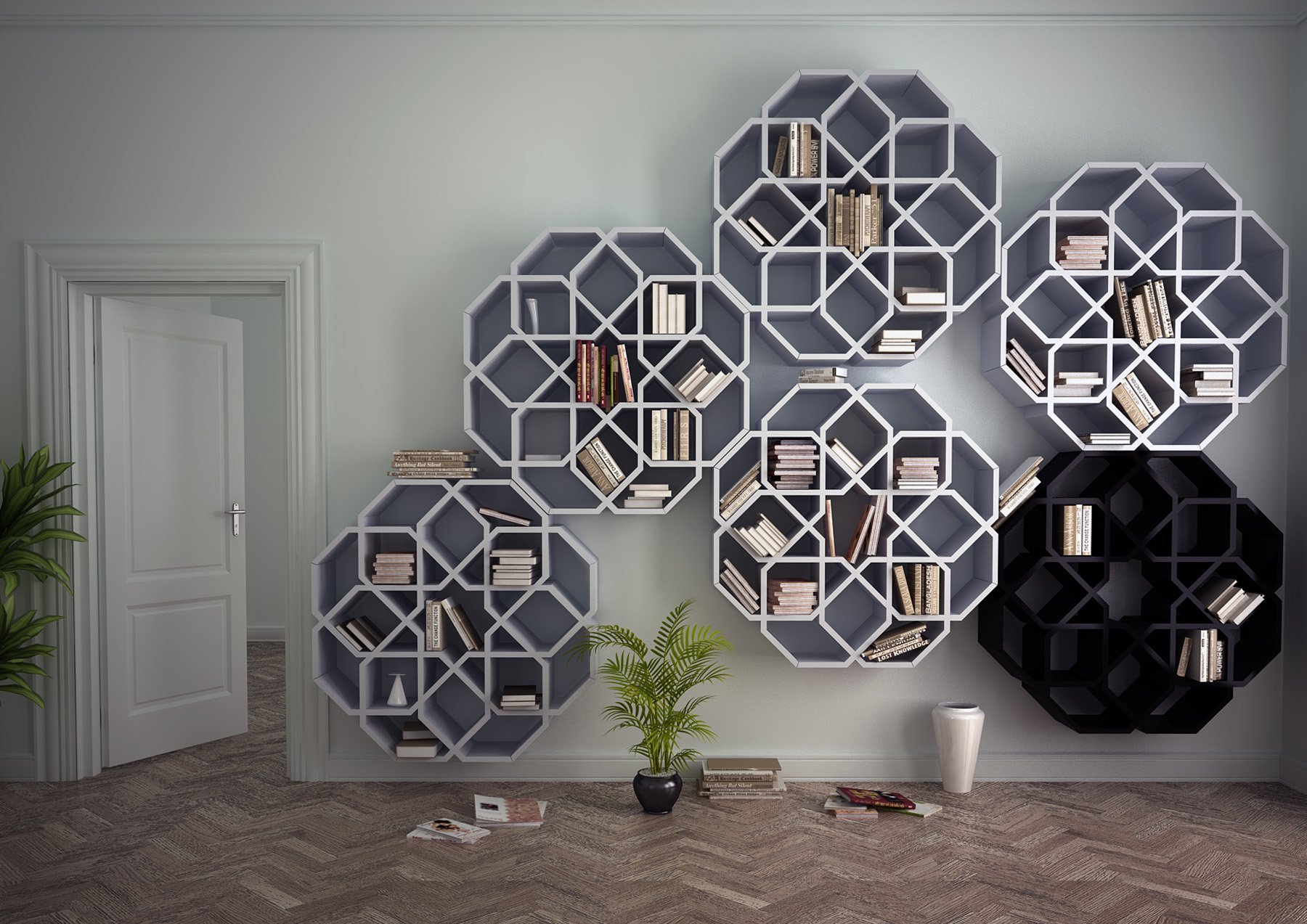 Книжные полки в форме сот