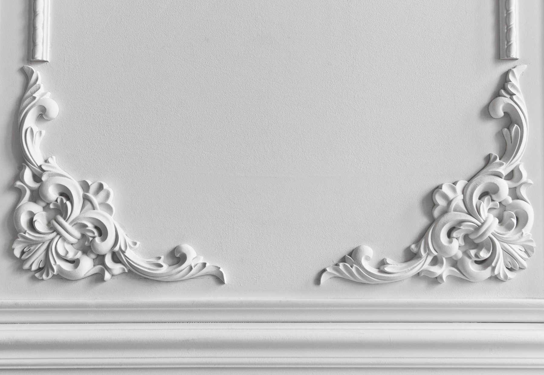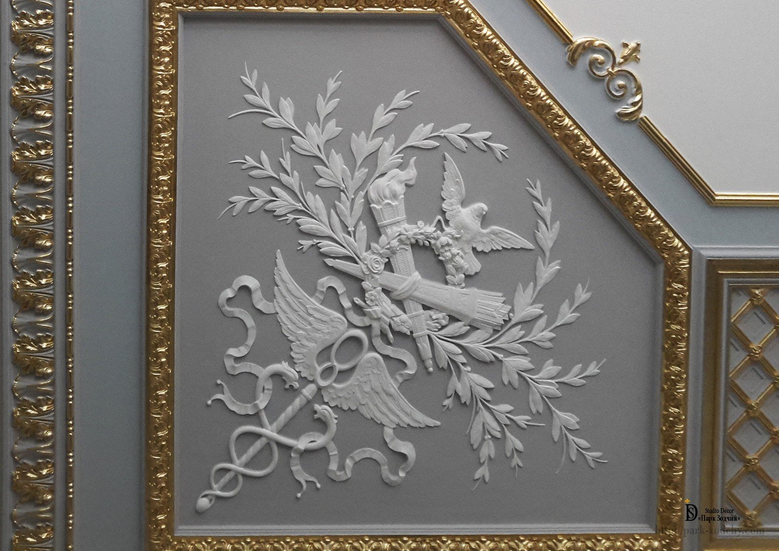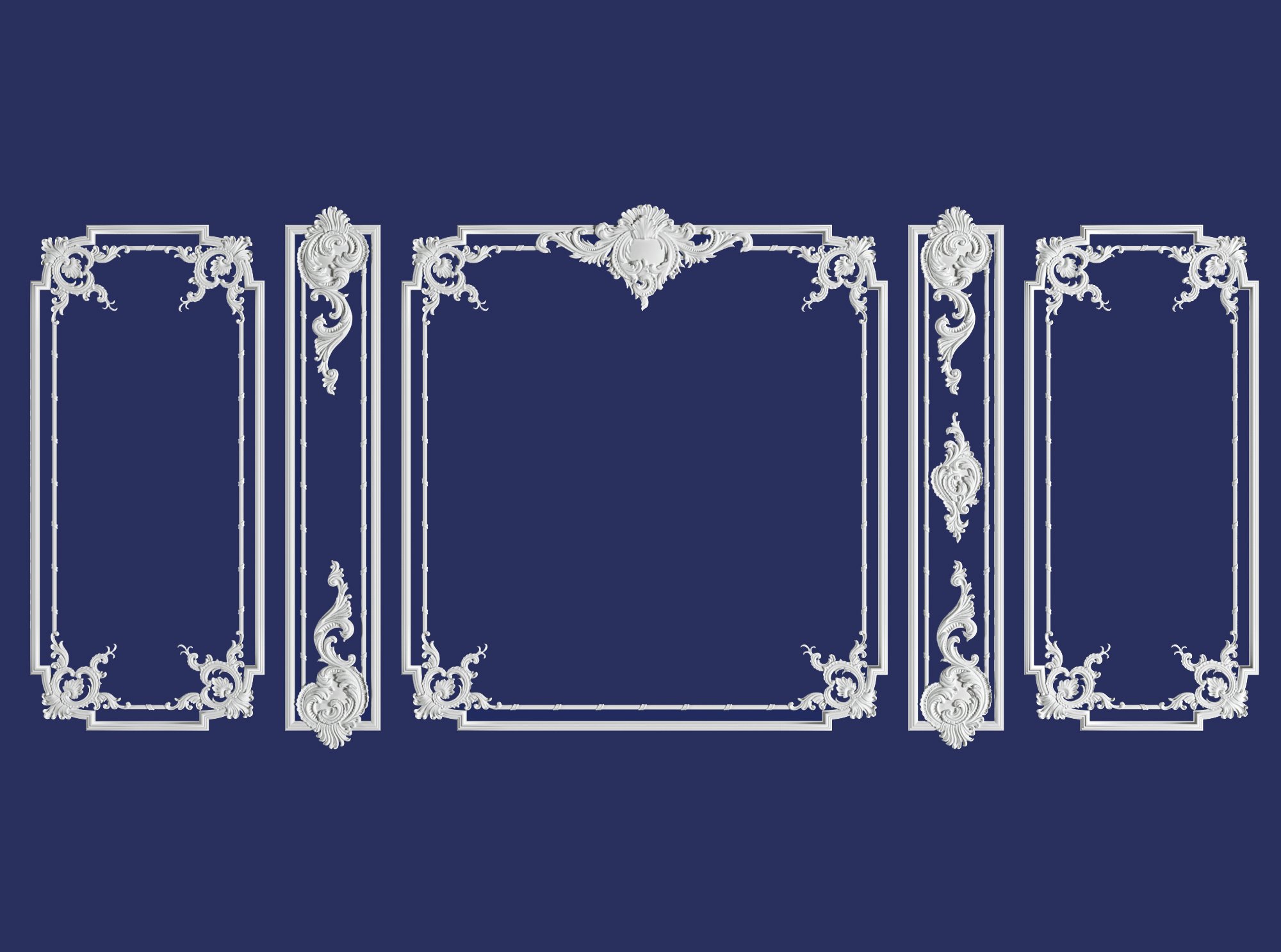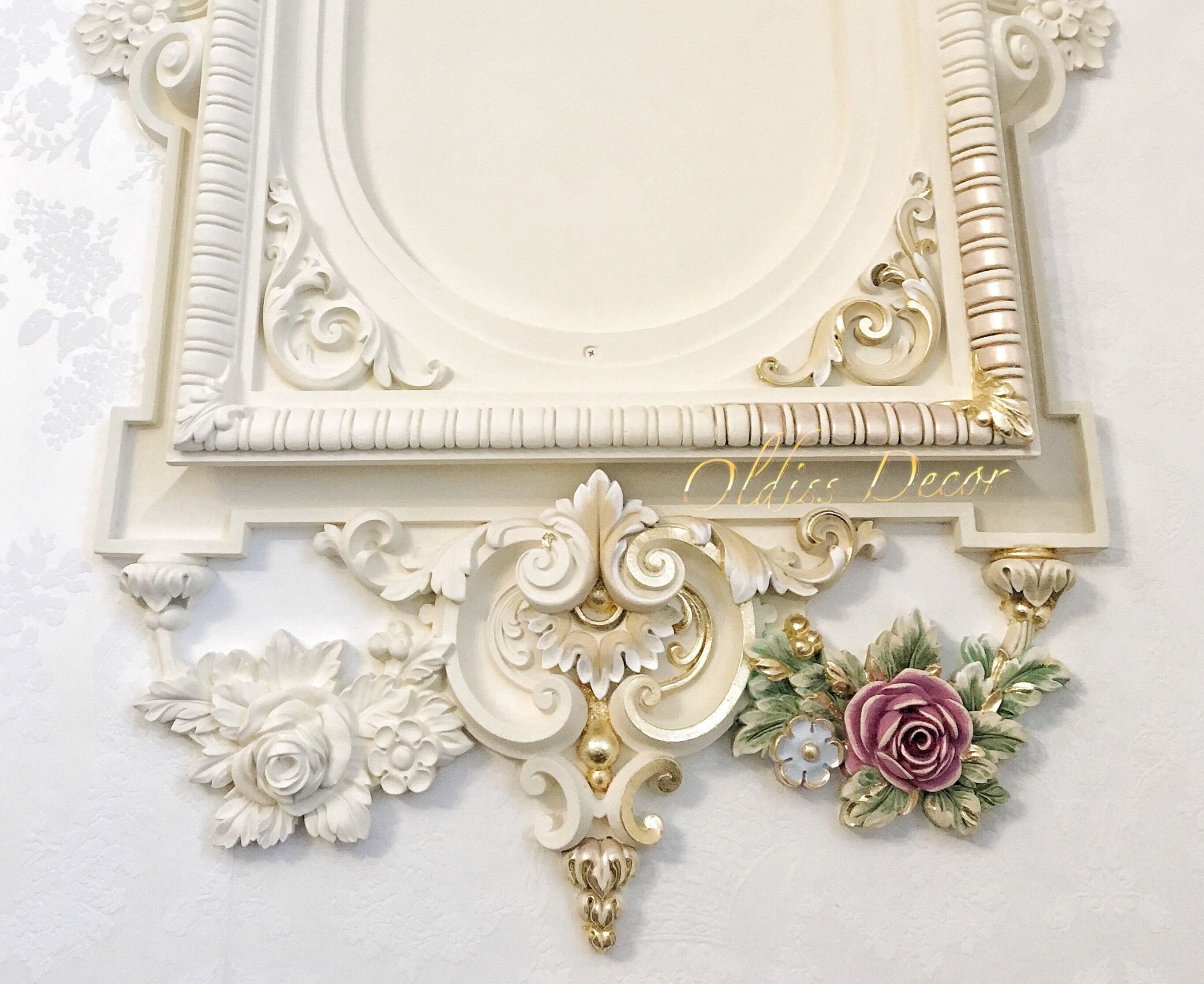 Золотистая лепнина узоры в рамки на стене в интерьере