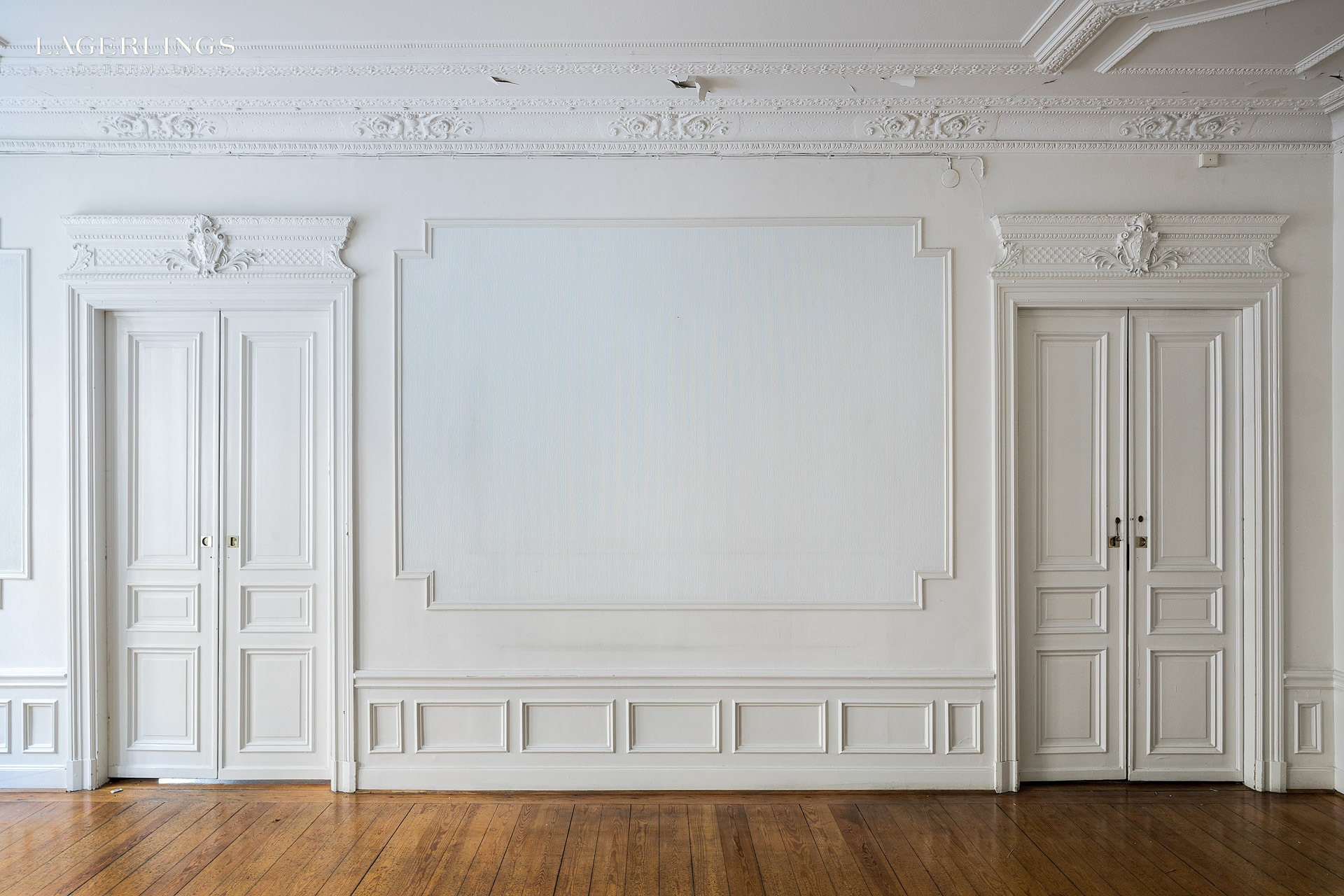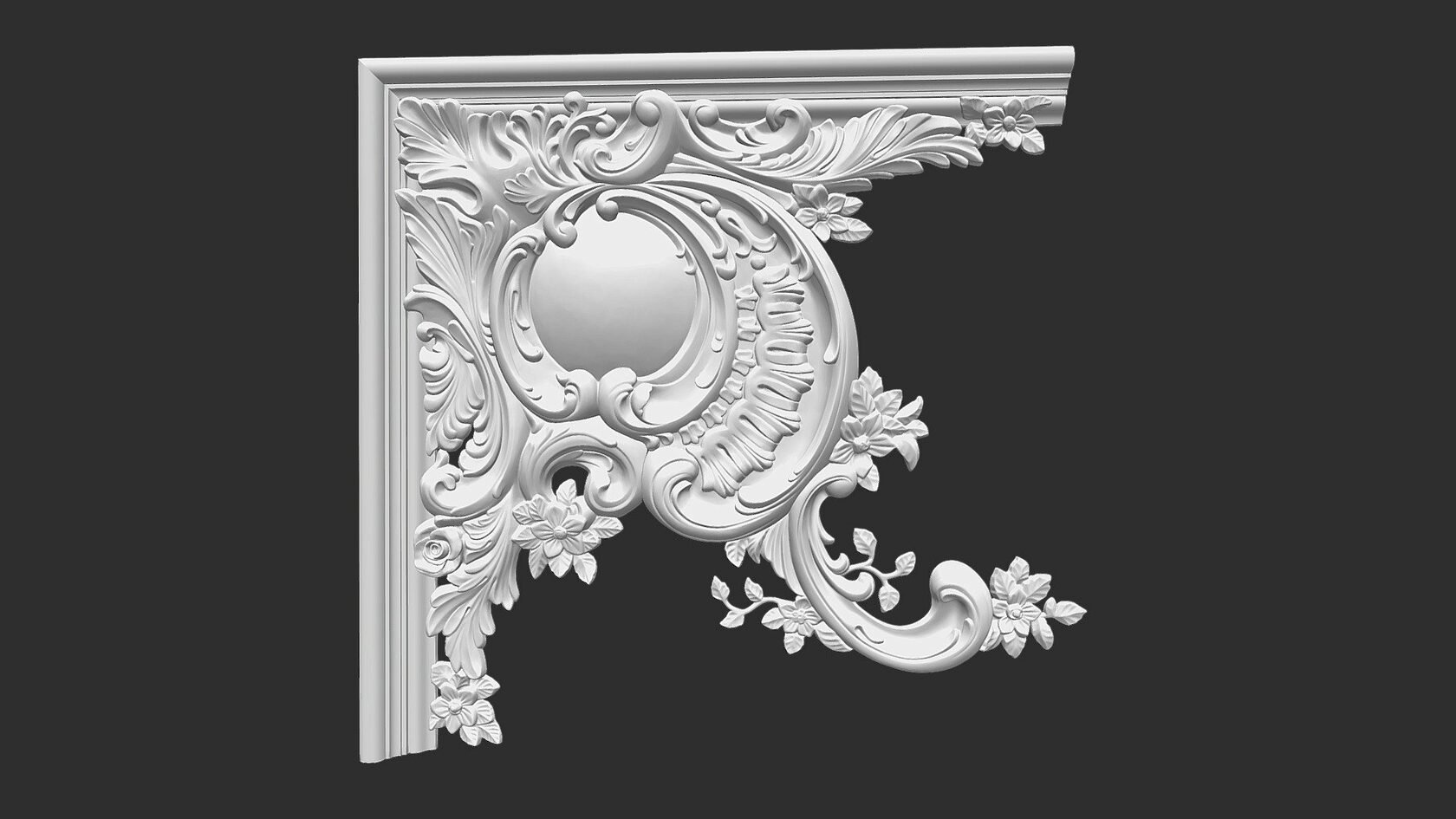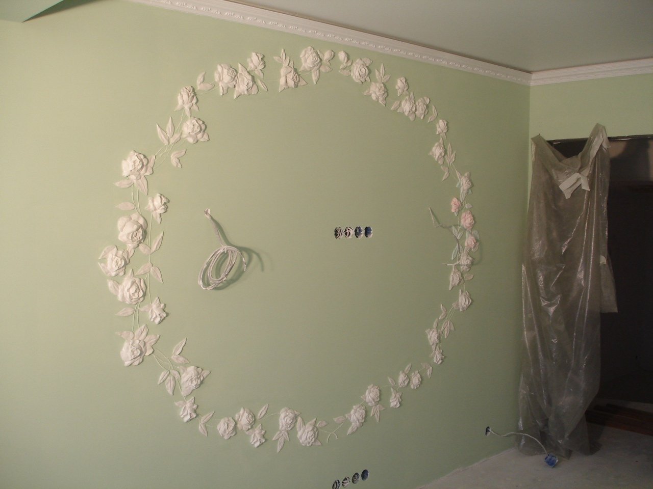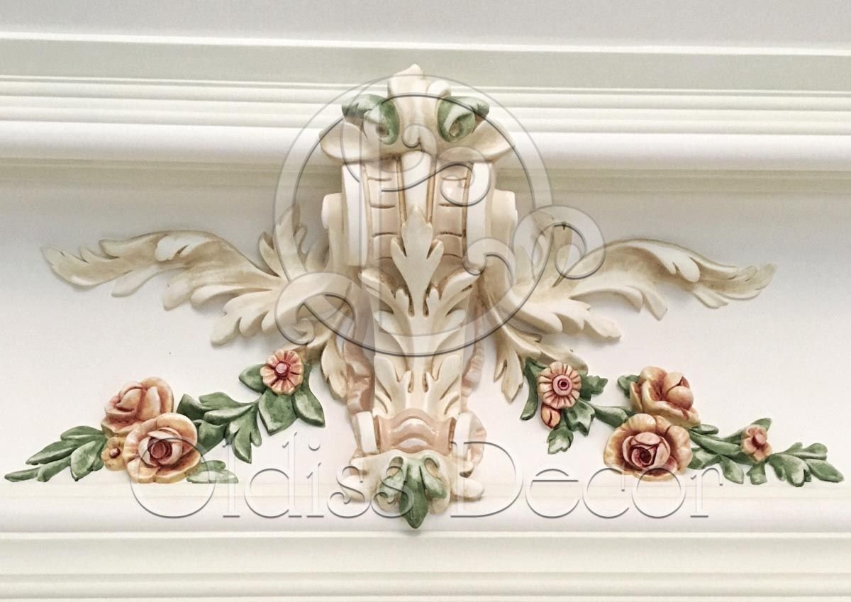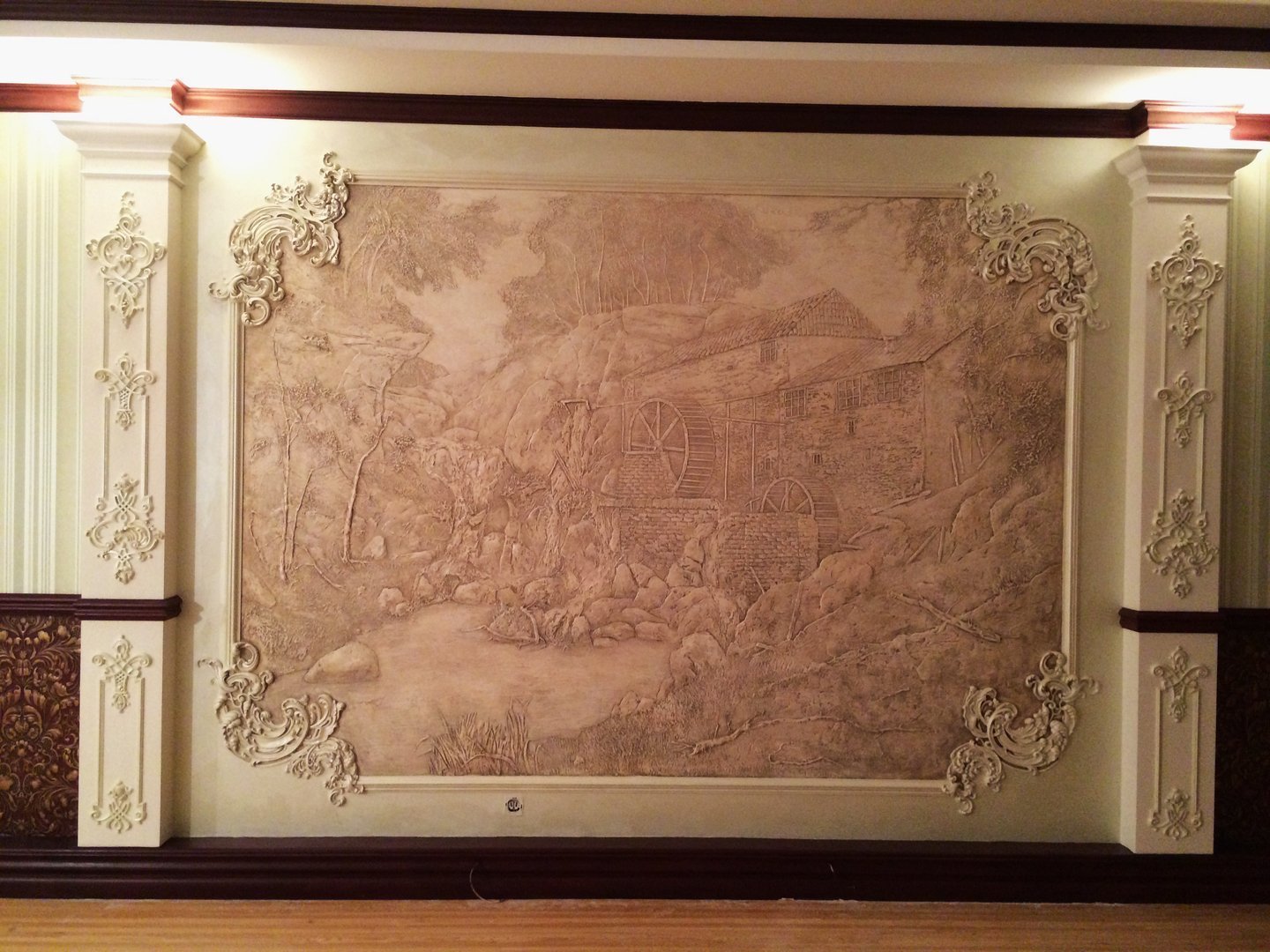 Золотистая лепнина узоры в рамки на стене в интерьере