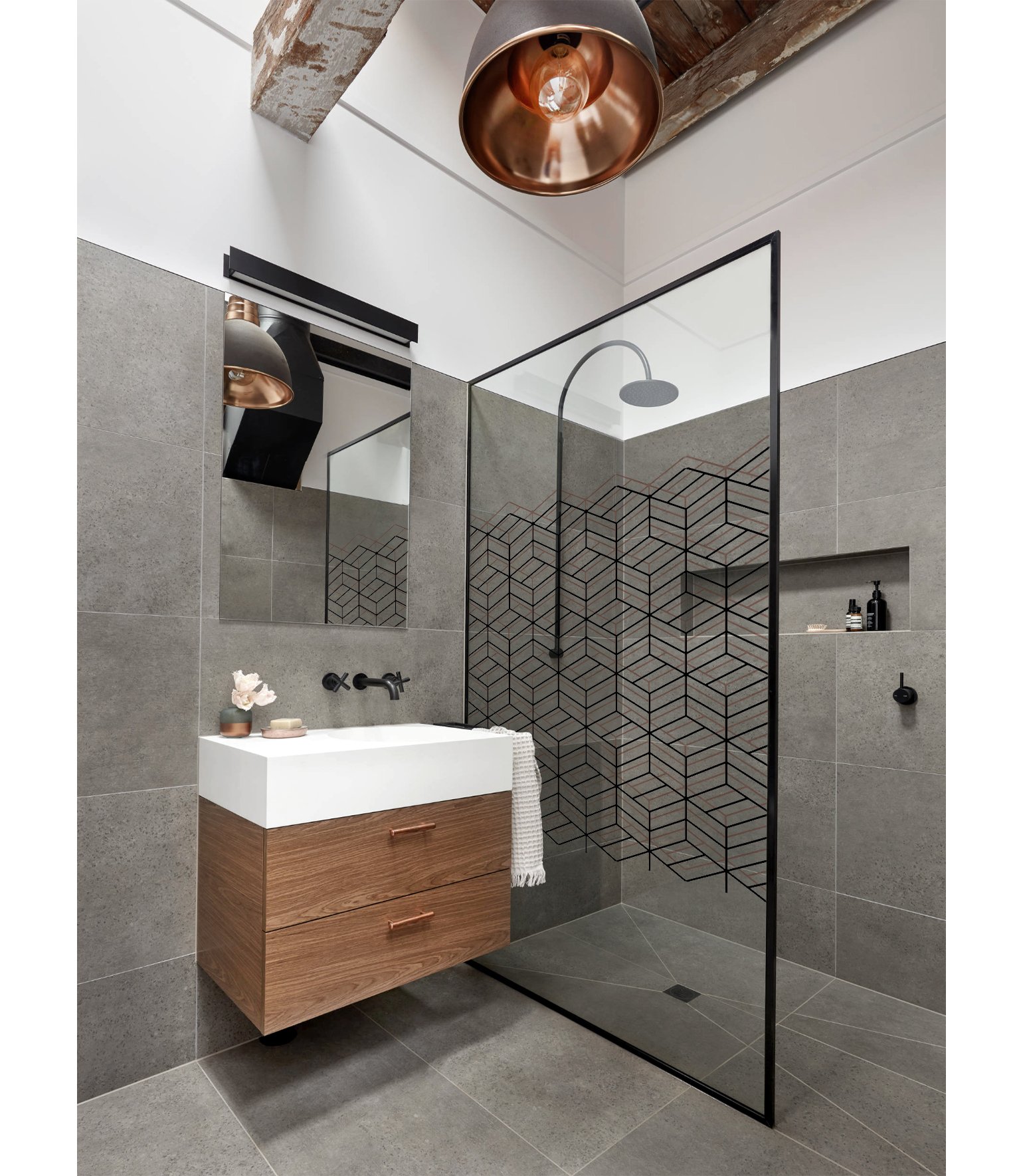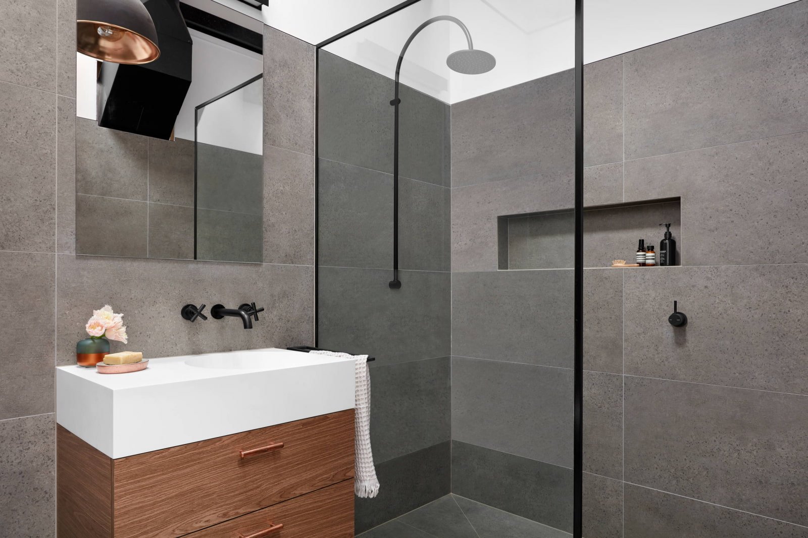 Стильная ванная комната с душем