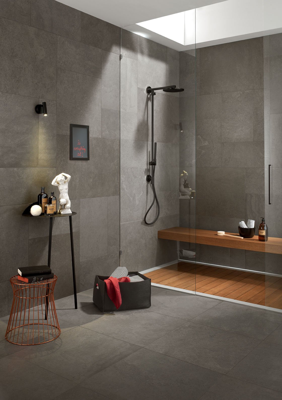Душевая комната серый керамогранит