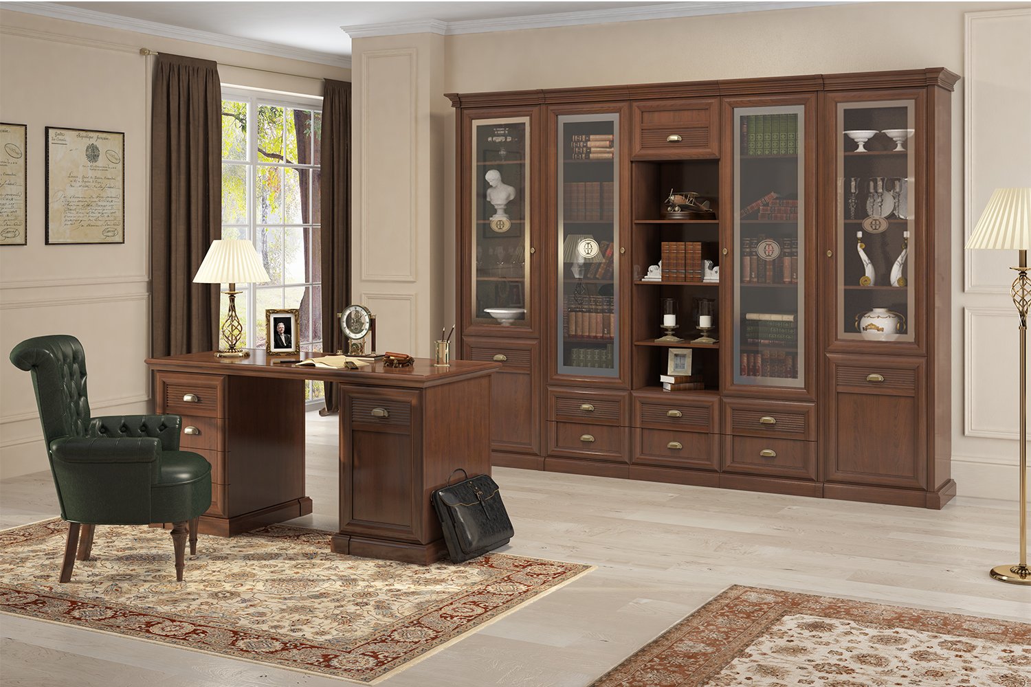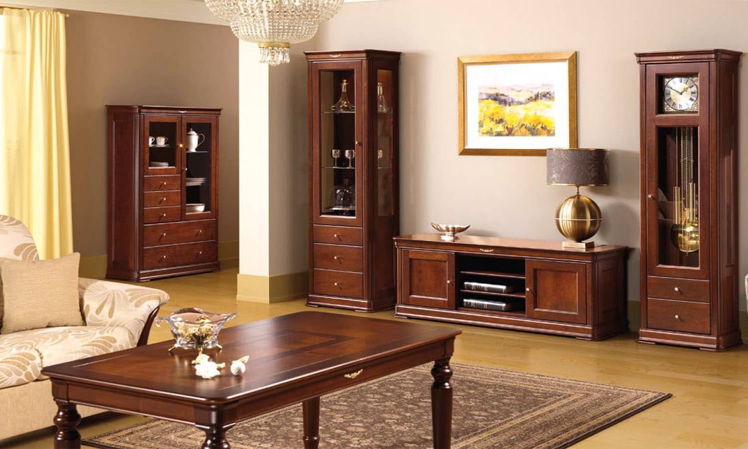 Гостиная в классическом стиле с темной мебелью