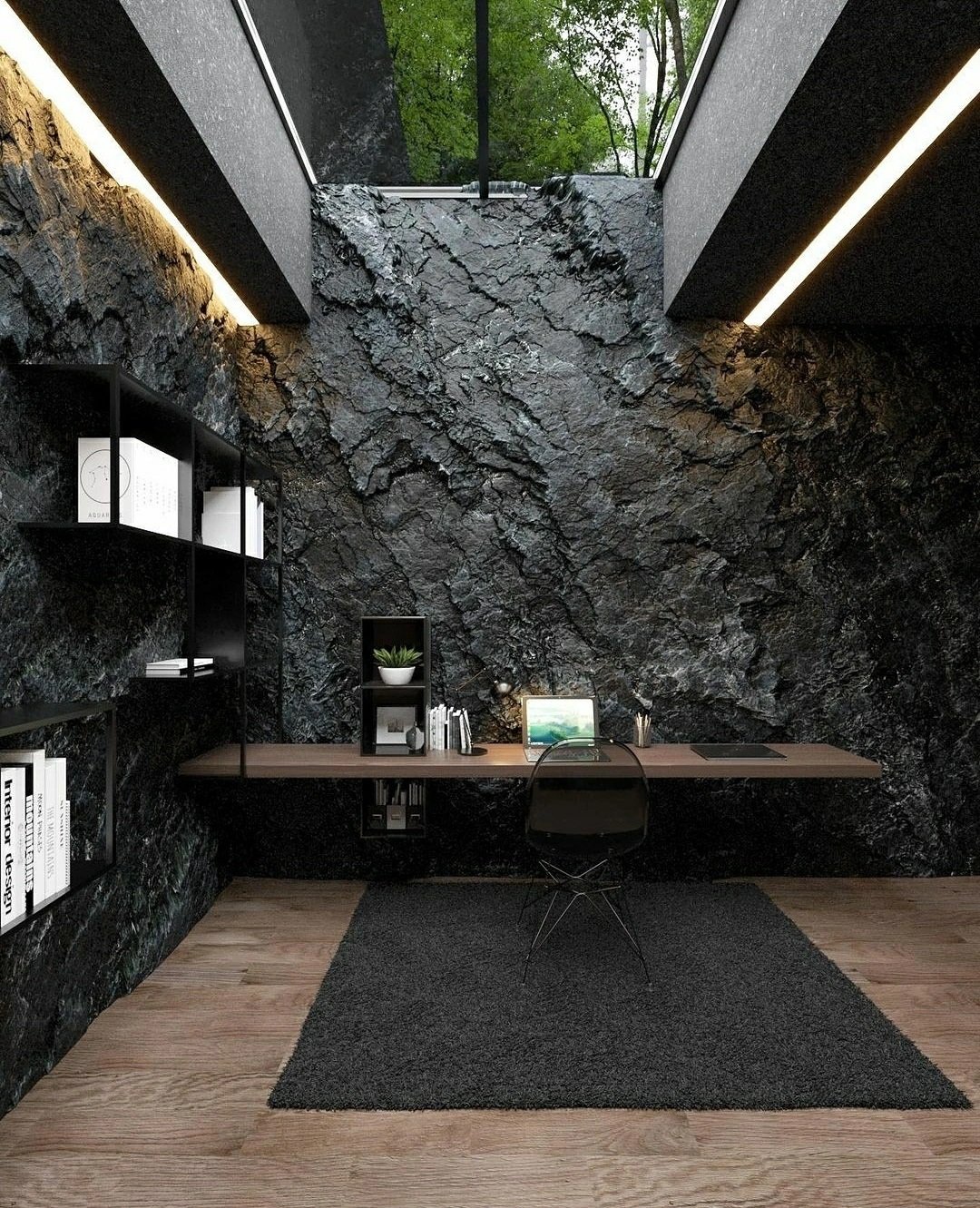 Черный камень в интерьере