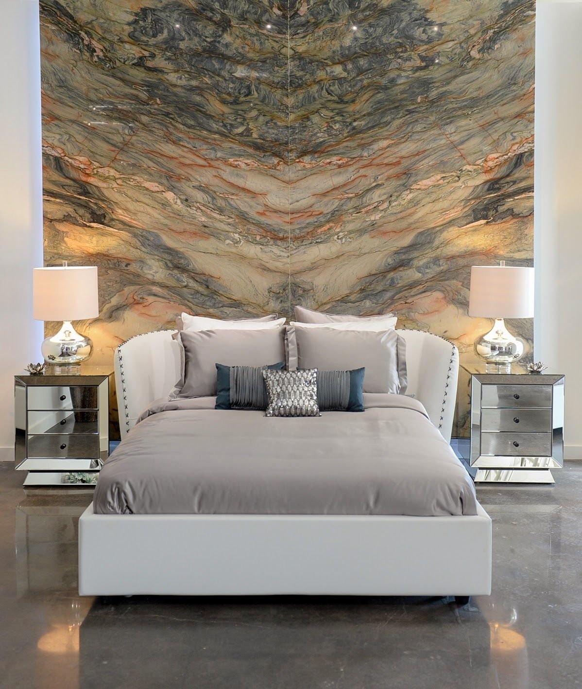Мрамор в интерьере спальни