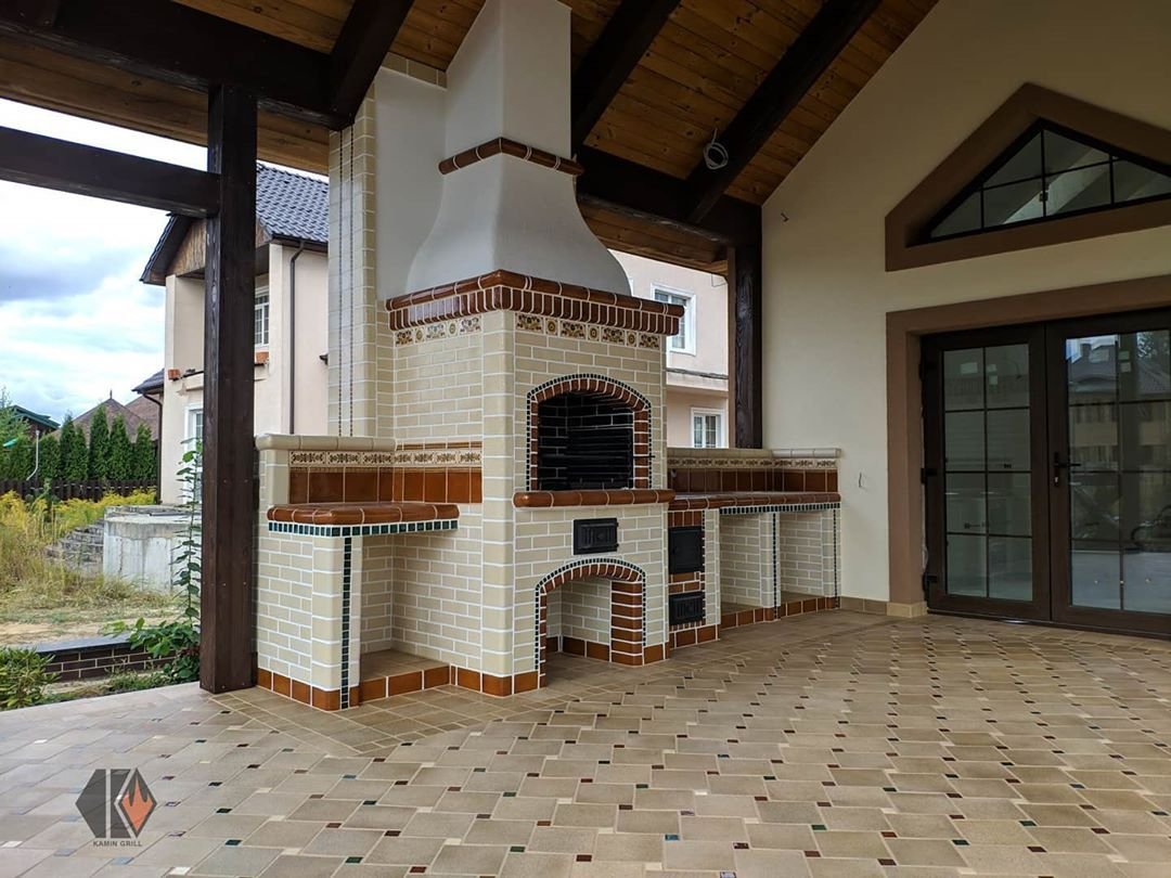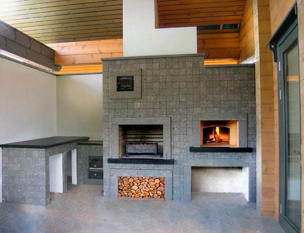 Мангальная зона с камином на веранде